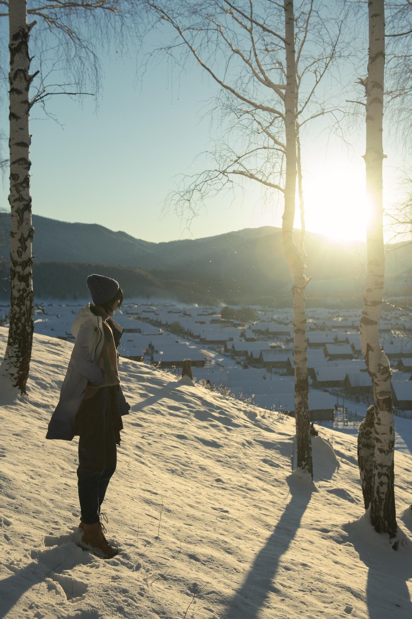 关于禾木村拍照机位 1.禾木观景台:从村里走上去大概要20来分钟,可以看到禾木村的全景 2.日落观景台:离村子很近的一个有白桦林的小山坡,可以看日落 (不滑雪的话禾木村待两天一晚差不多了,可以体验马拉雪橇、堆个小雪人呀)