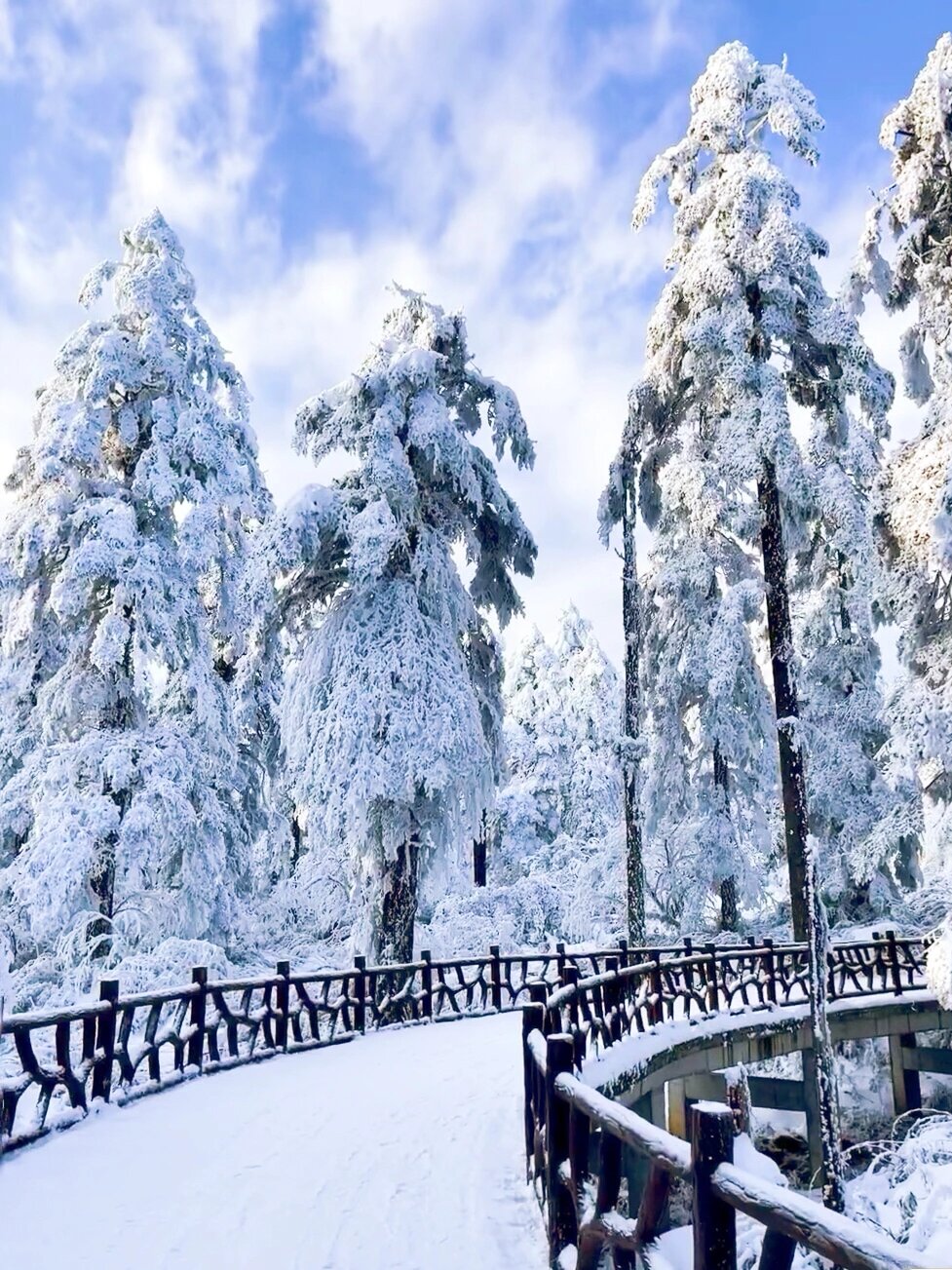 有堆满雪的木质栈道,挂着雪的雾淞与冷杉,还有美丽的云海。