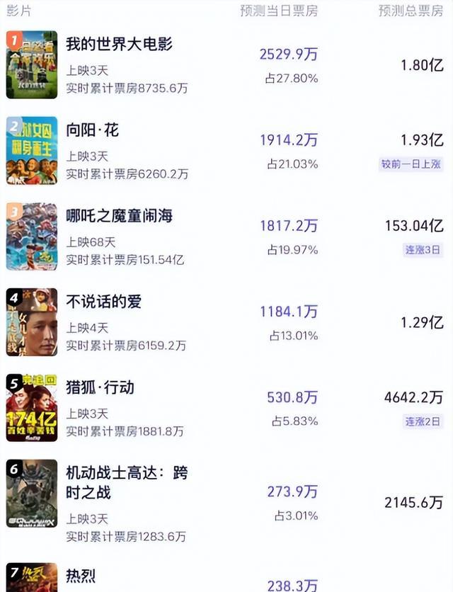初期有预测显示,《向阳花》总票房可能在1.75亿。