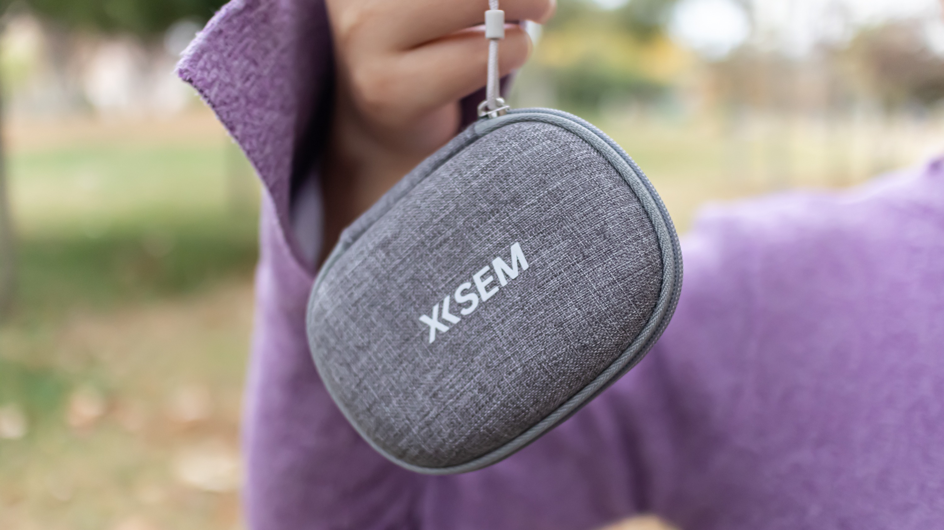 最让我感到惊讶的充电仓的外观和材质,居然做成了一个拉链的包包,表面的布艺织物材质摸起来还挺舒服,拿在手里感到防滑效果不错,掉在地上或碰到其他物品也不会轻易损坏。
