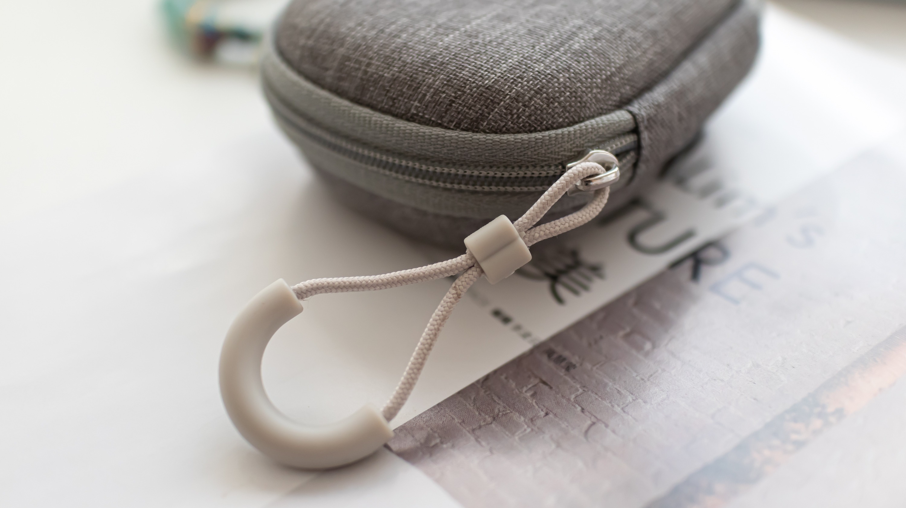 充电仓的打开方式也和拉链包一样,拉动拉链头就可以了,可以180度打开,非常有创意。在日常携带时,可以将它套在手指上,挂在包包上,甚至裤腰带上,非常方便。更重要的是,拉链的质量非常好,不会轻易损坏。