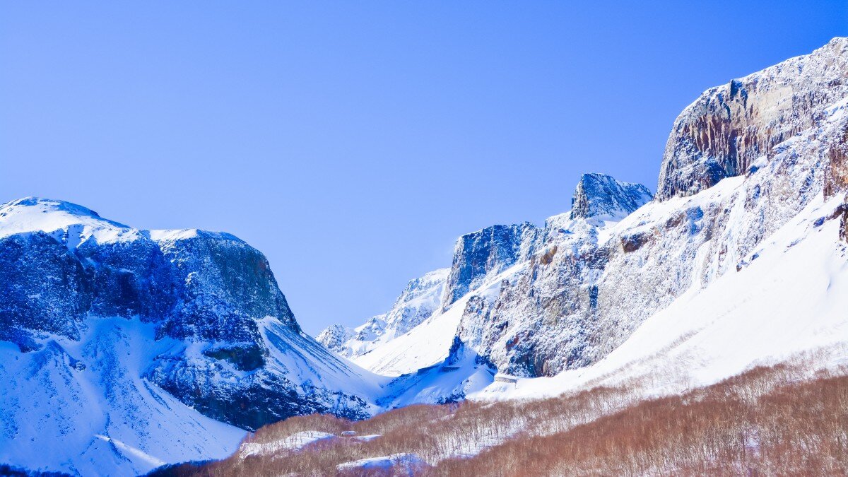 在冬季,整个山峰被厚厚的积雪覆盖,如同一条银色的巨龙盘踞在天地之间。从远处看去,雪山和蓝天相映成趣,让人感到一种心灵的震撼。