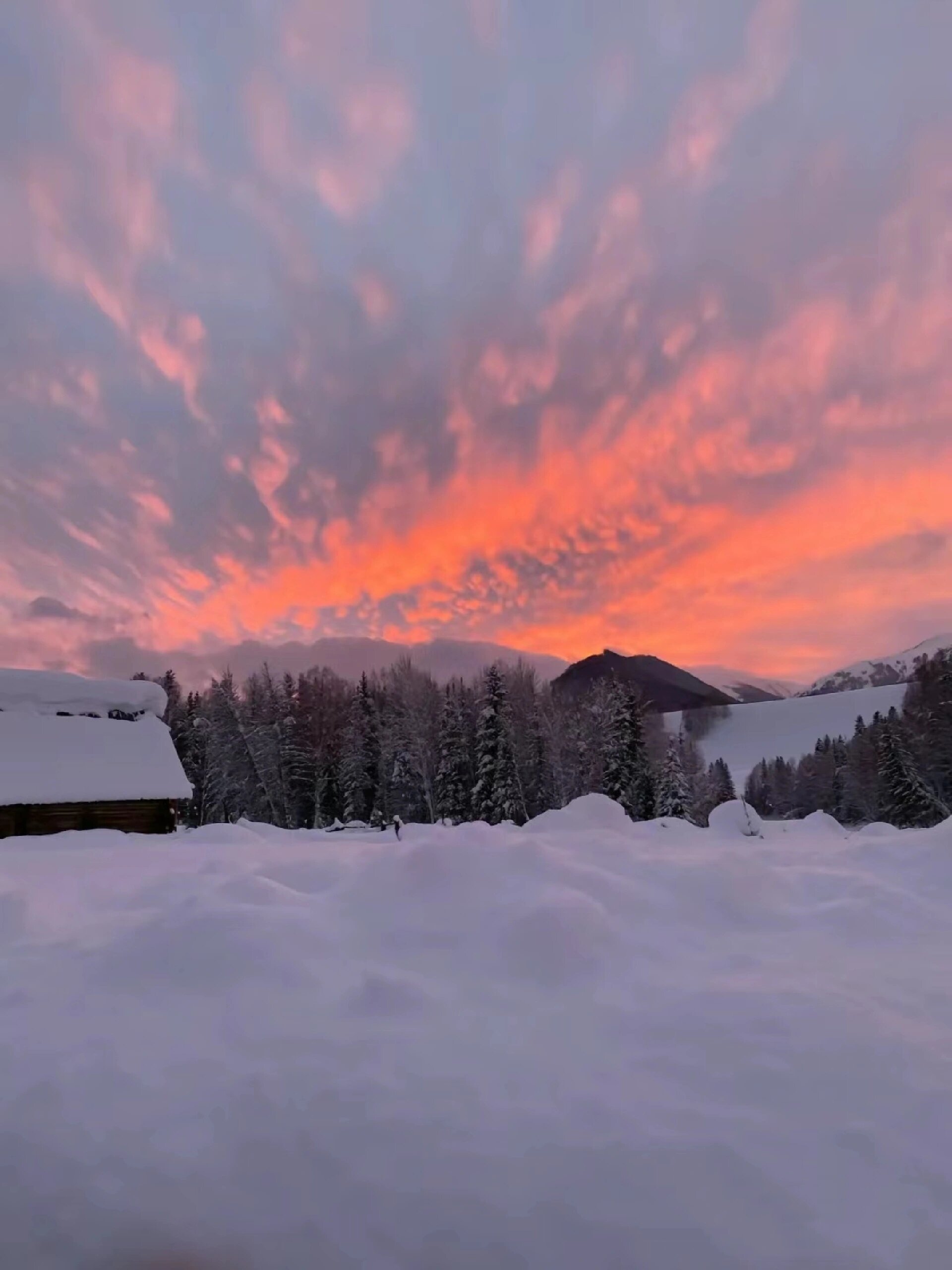 👉如果说有一场冬季的童话,那请相信,这场童话一定是发生在新疆被白雪覆盖的小木屋旁炊烟升起👀