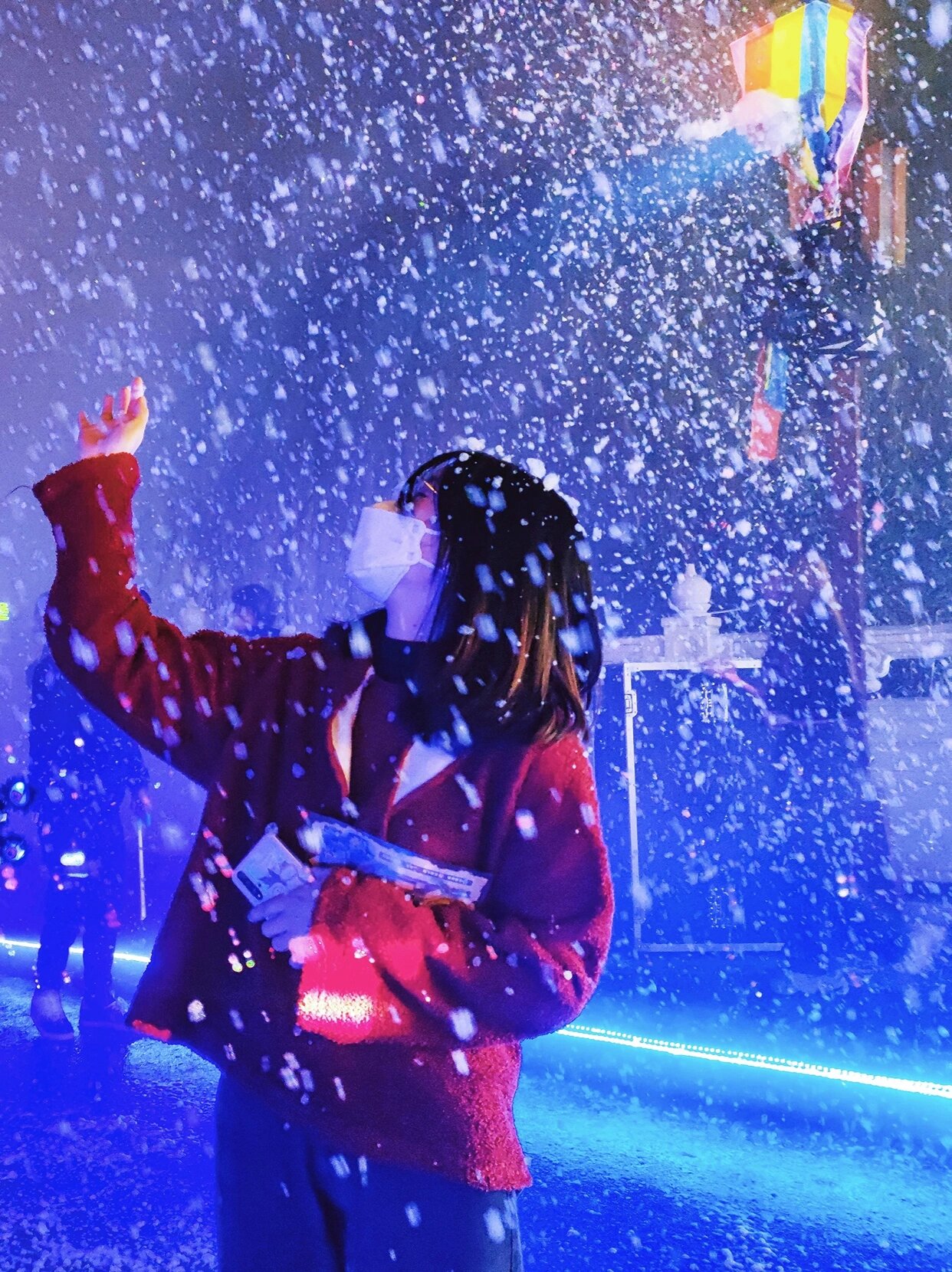 👯♀️还可以尝试与雪互动,比如张手撒雪、低头看雪,也可以抓拍动作,灵动感照片的精髓就是越颠婆越好看!