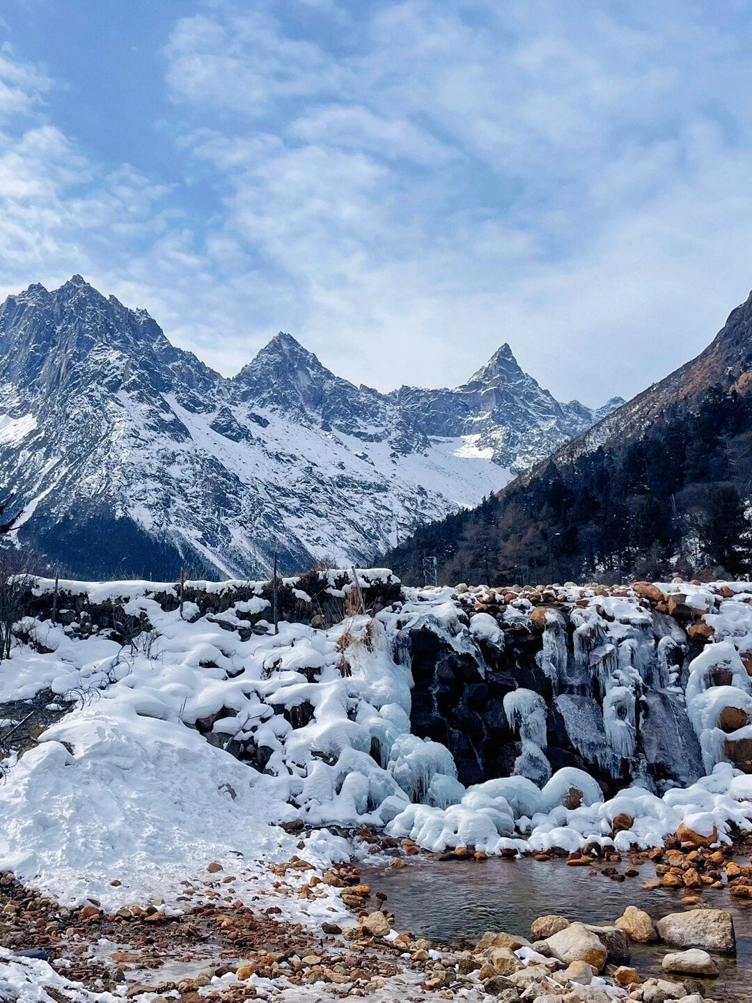树林堆满的积雪❄️瀑布💦雪山 ❄️怎么拍都巨好看