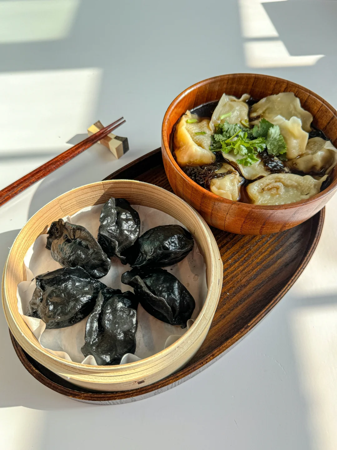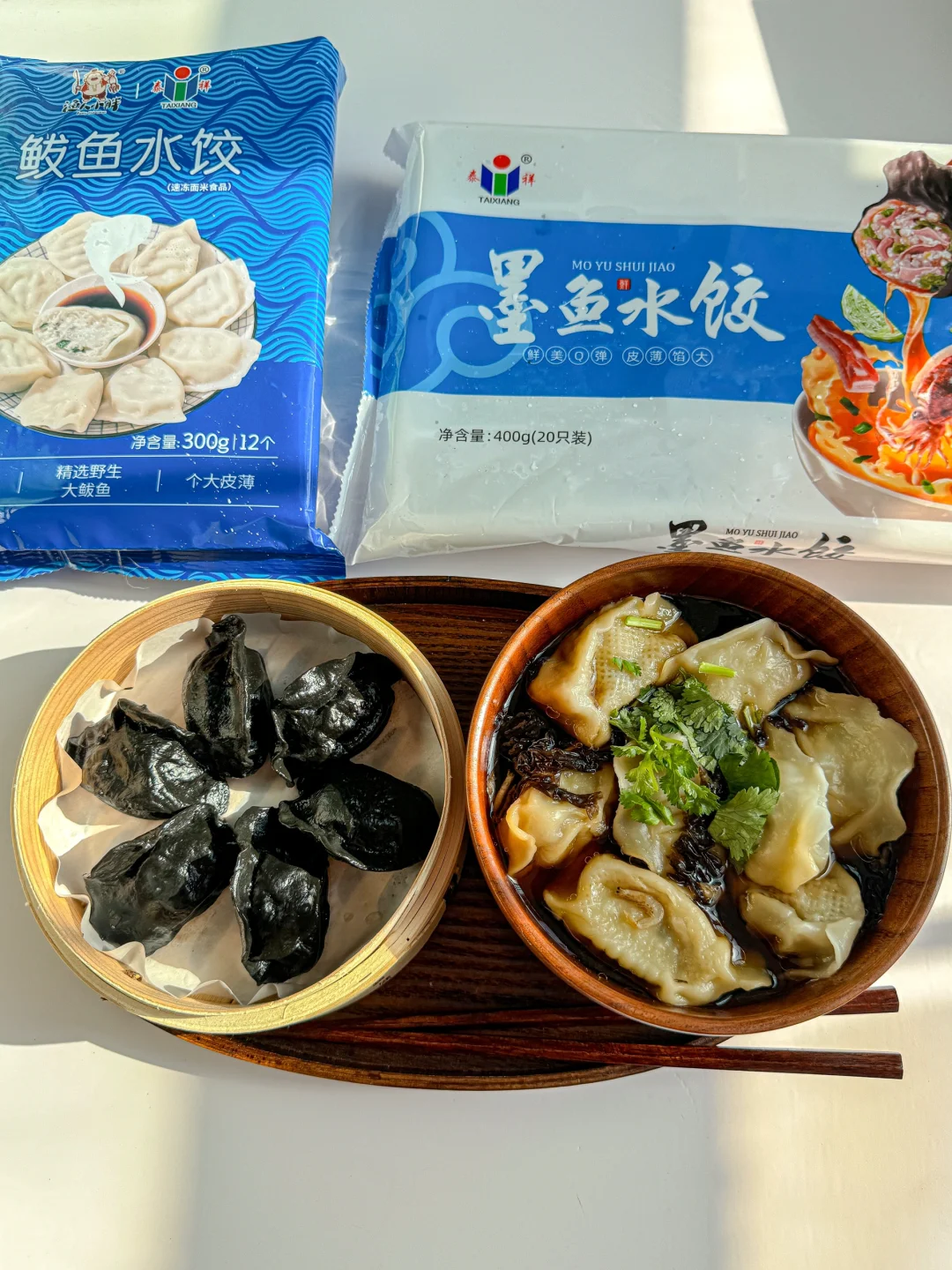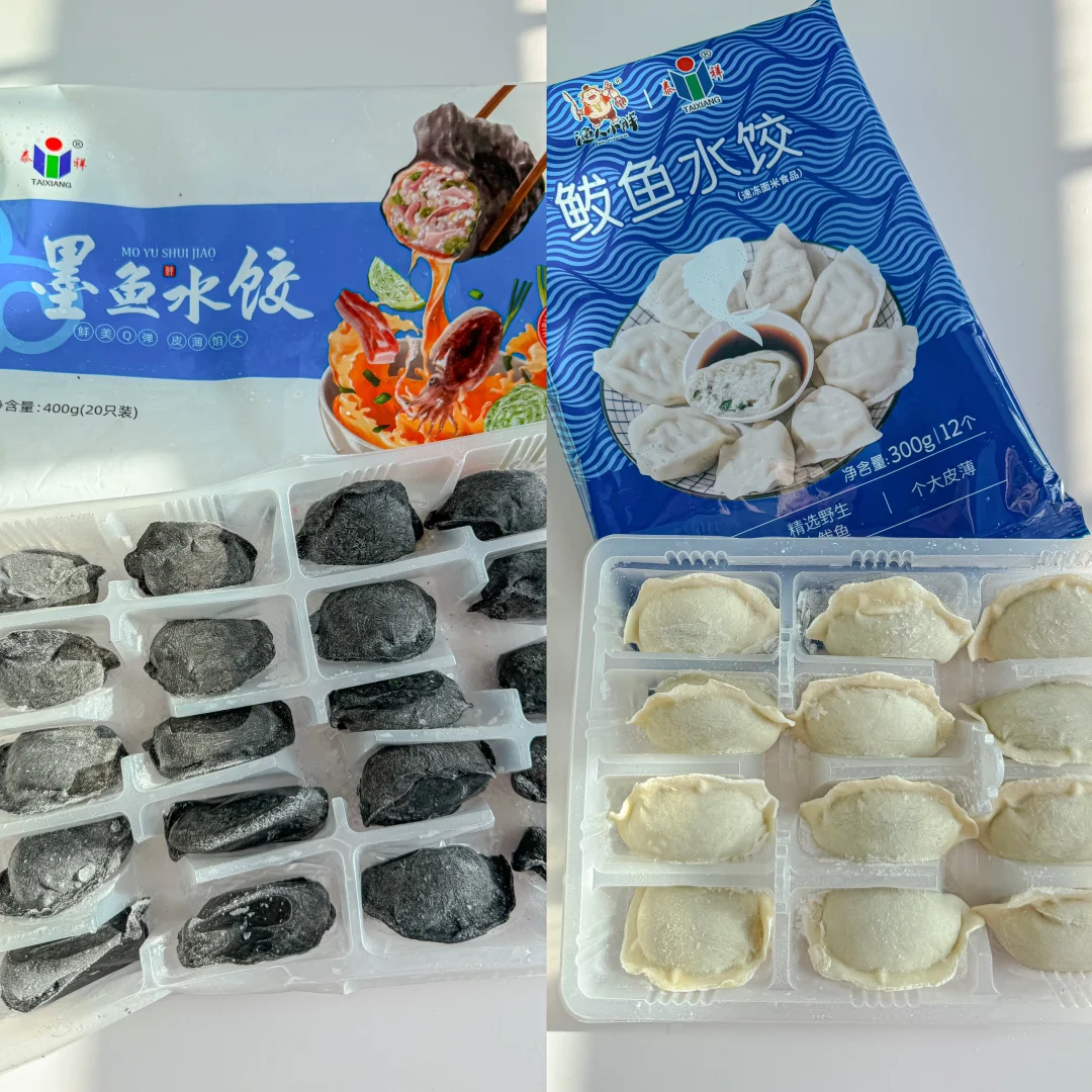 下班累了不想开火,又不想吃外卖 快速煮个饺子🥟是我的首选 饺子又不想随便吃吃 那一定要选择品质高,口感好的 酸汤鲅鱼水饺✖️蒸墨鱼饺子 🥟山东的鲅鱼水饺真的是我的最爱, 真材实料,O添加,皮薄馅大,肉质细腻,鲜而不腥 🥟墨鱼水饺饺子皮用纯墨鱼汁调色,里面还有一块大大的鱿鱼,肉质超级紧实,肉汁满满。 吃完一碗酸汤水饺,在这个寒冷的晚上暖乎乎的