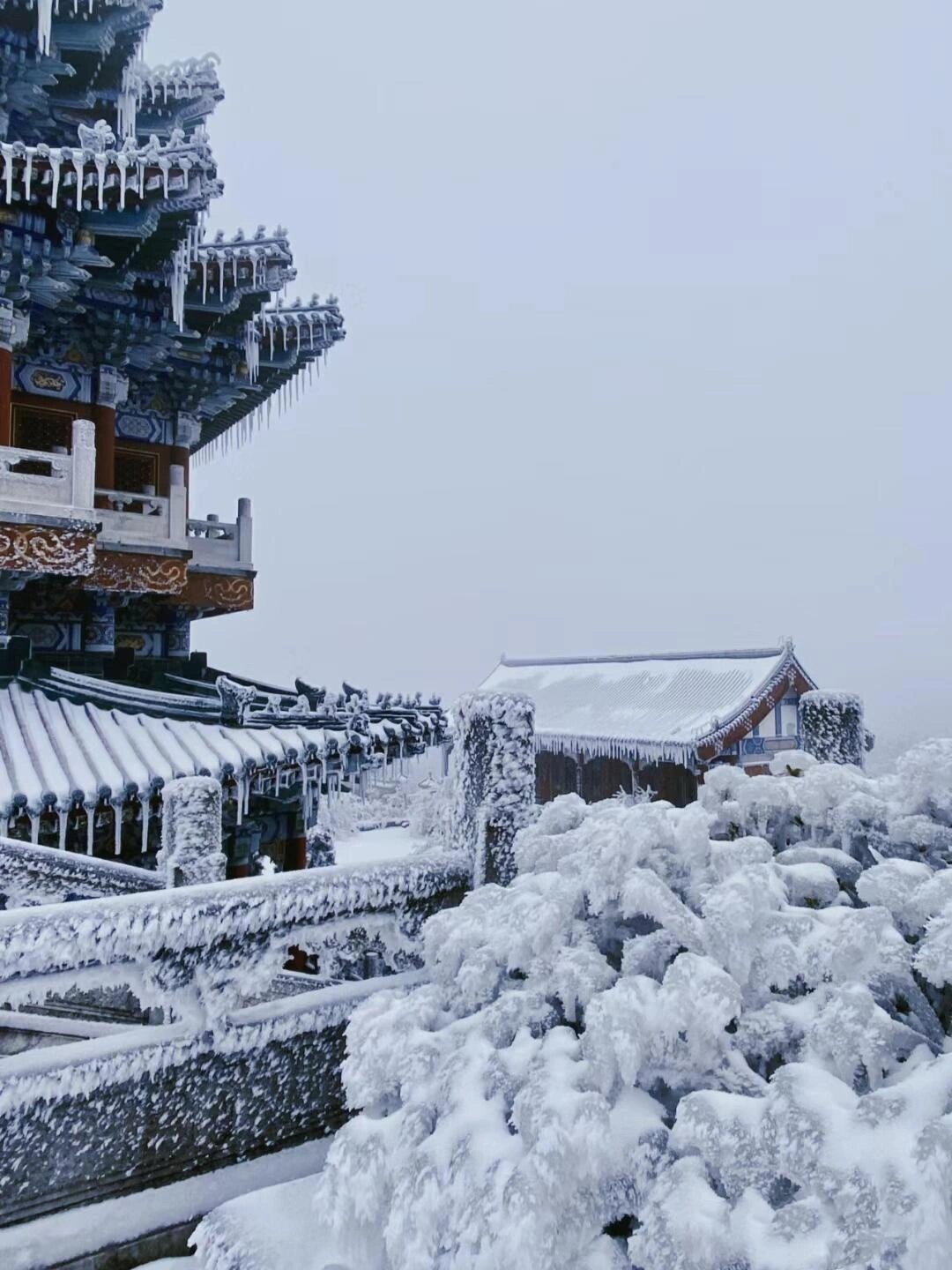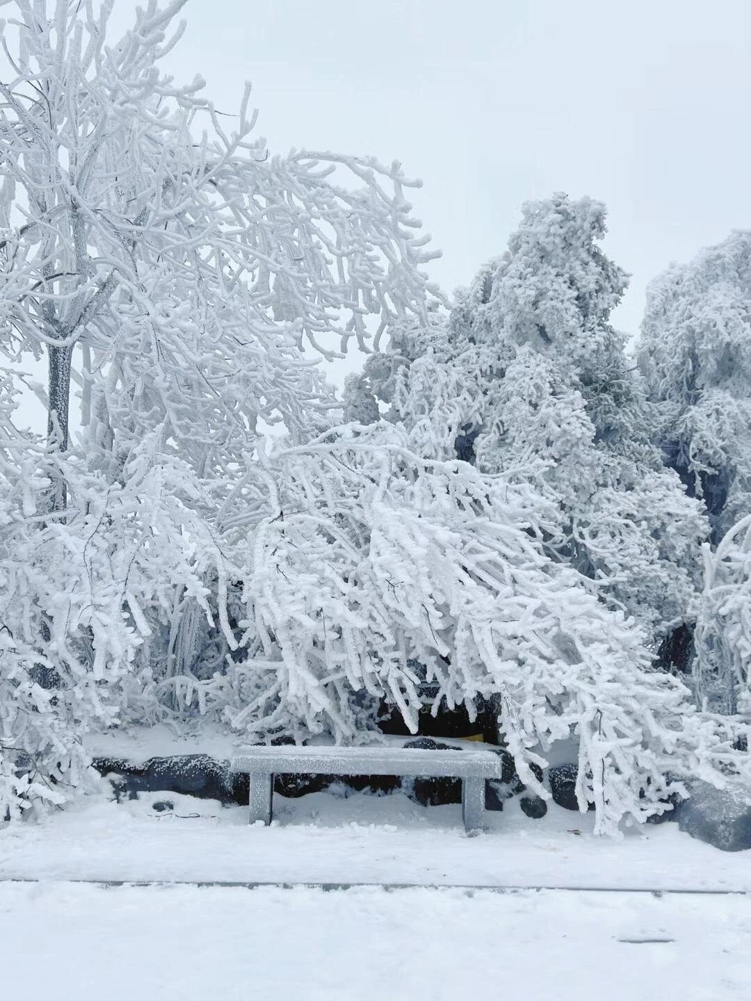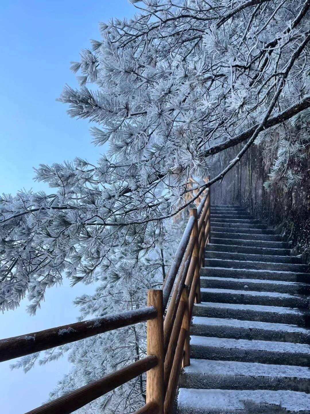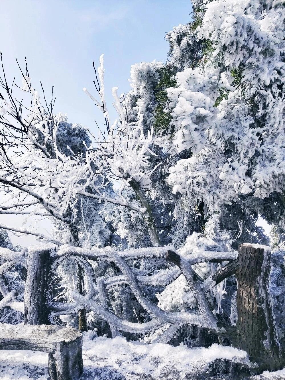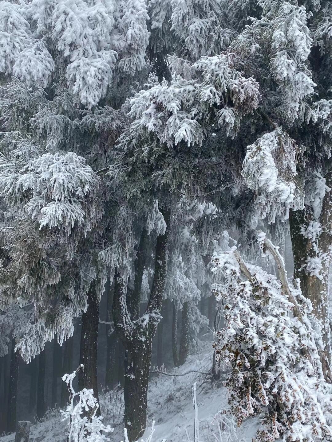 南岳衡山是湖南省海拔最高山峰的缘故,所以每到冬天气温下降的快,雪也会下的更早一些,经常可以看到层峦叠嶂、晶莹剔透的雾凇景观。🌴