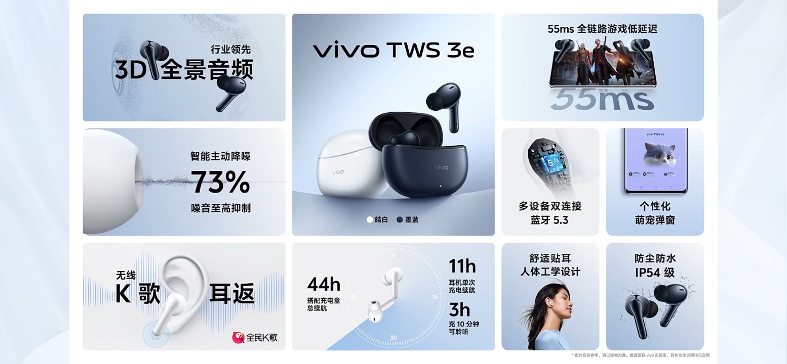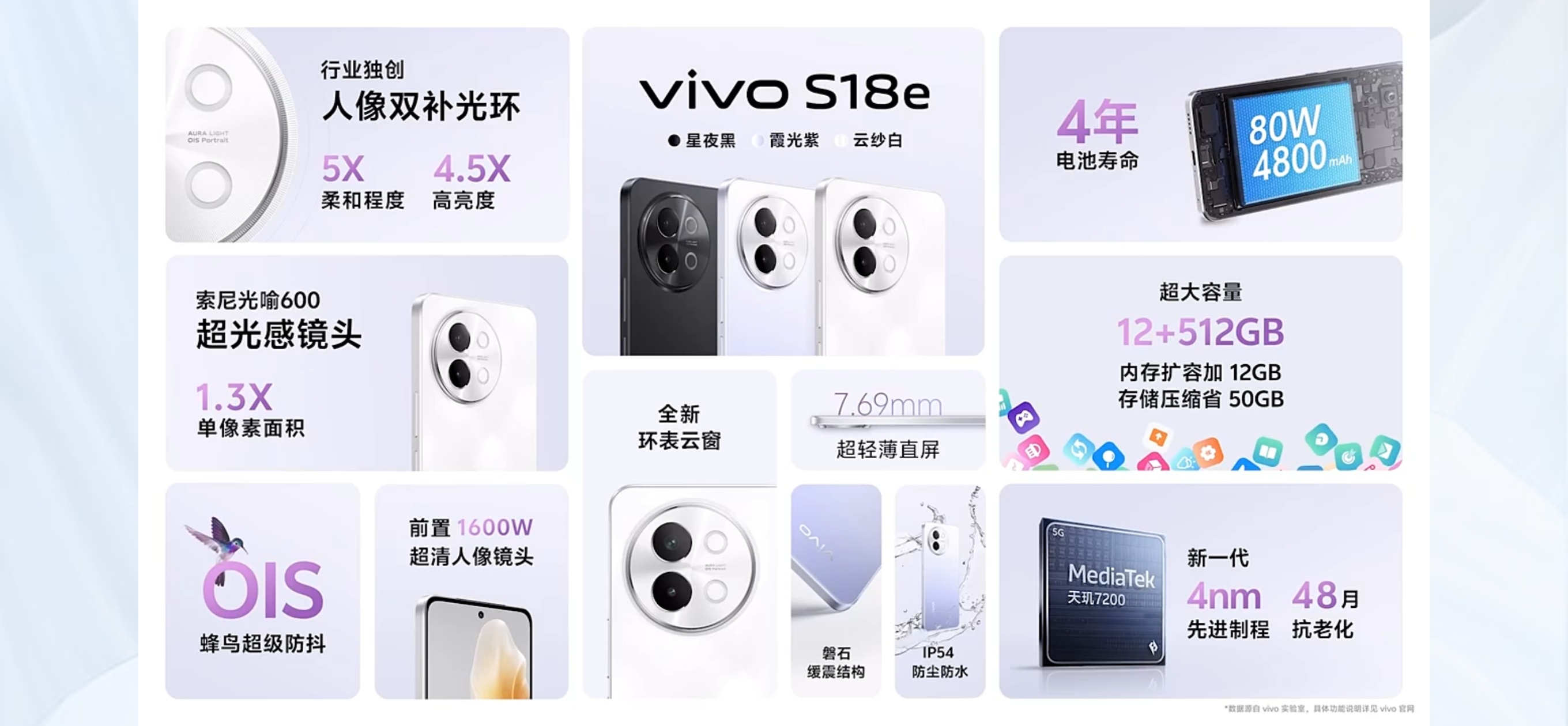 vivo S18e直屏手机发布天玑7200芯片,2099起vivo TWS 3e