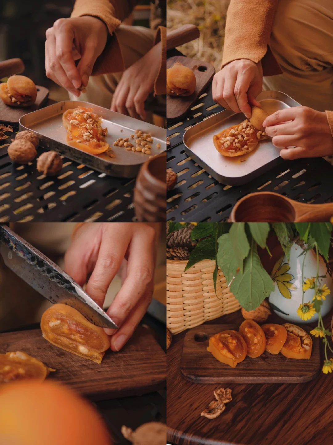 3️⃣在柿饼皮里撒一些一点的花生粒、瓜子粒或核桃粒,看个人口味万物兼可撒