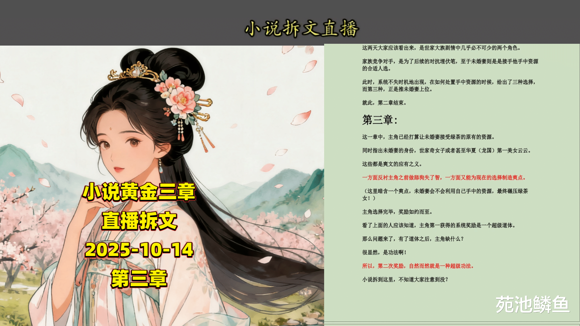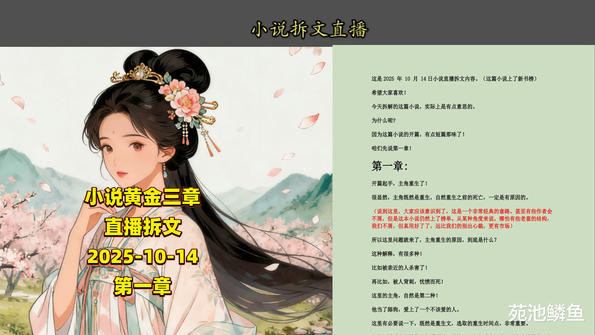 这是2025 年 10 月 14日小说直播拆文内容。(这篇小说上了新书榜)