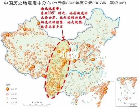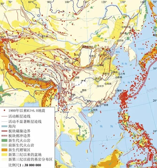 🔝:从历史地震分布图看,除了主要地震带外,仍有大约有5%-15%的6-6.9级地震发生在活动构造带外,另外大量5-5.9级地震则在各区域广泛发生,所以,主要地震带外的其它区域只能认为其实相对低风险区域,但仍有发生5-6.9级强震的风险。