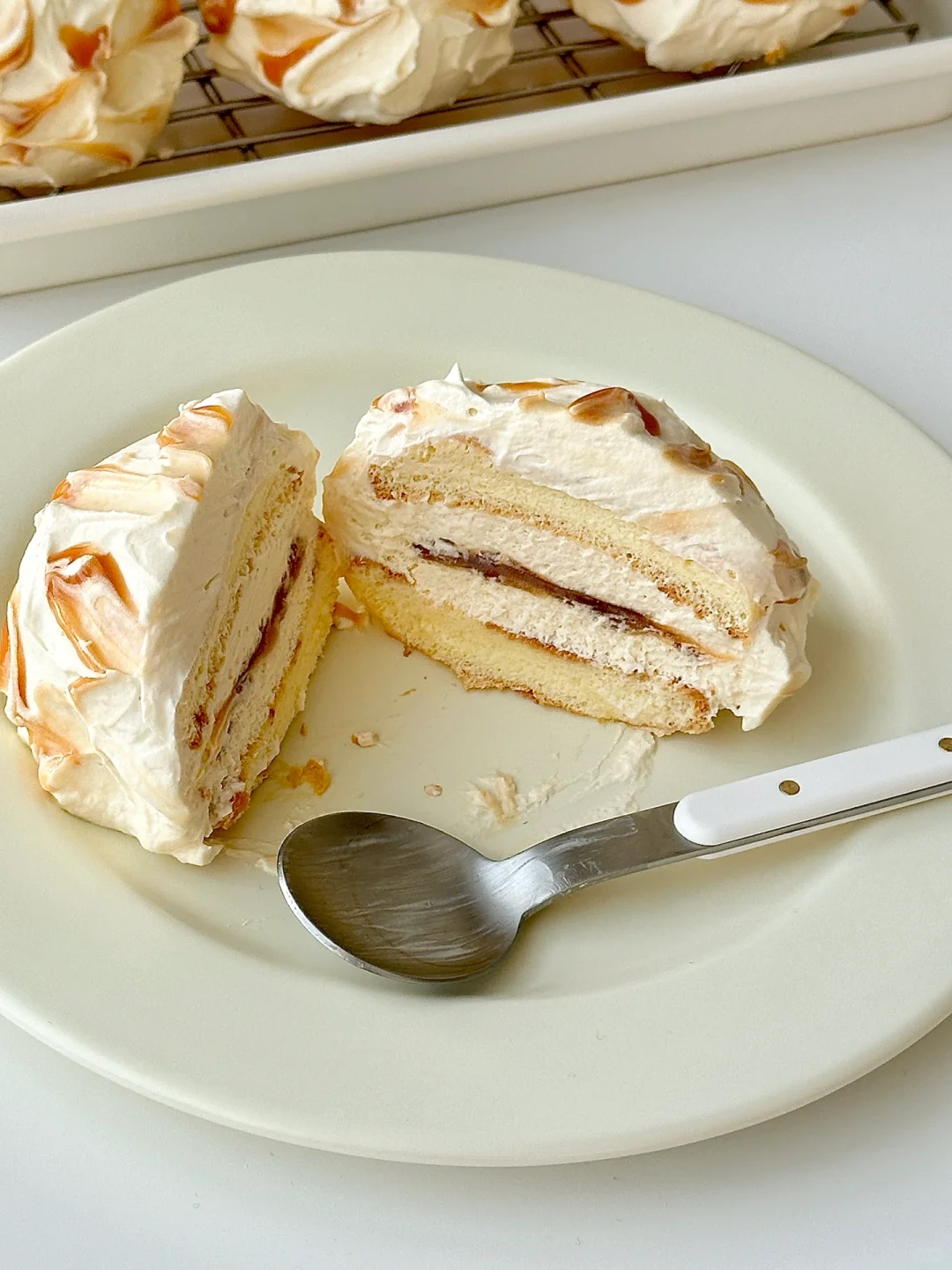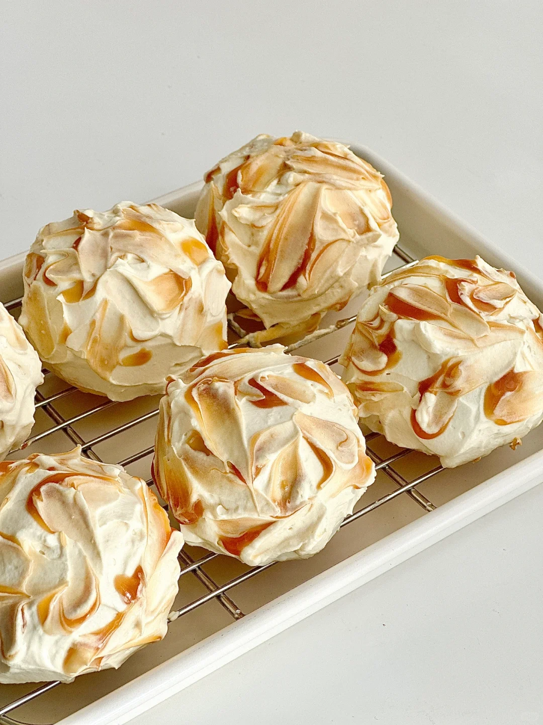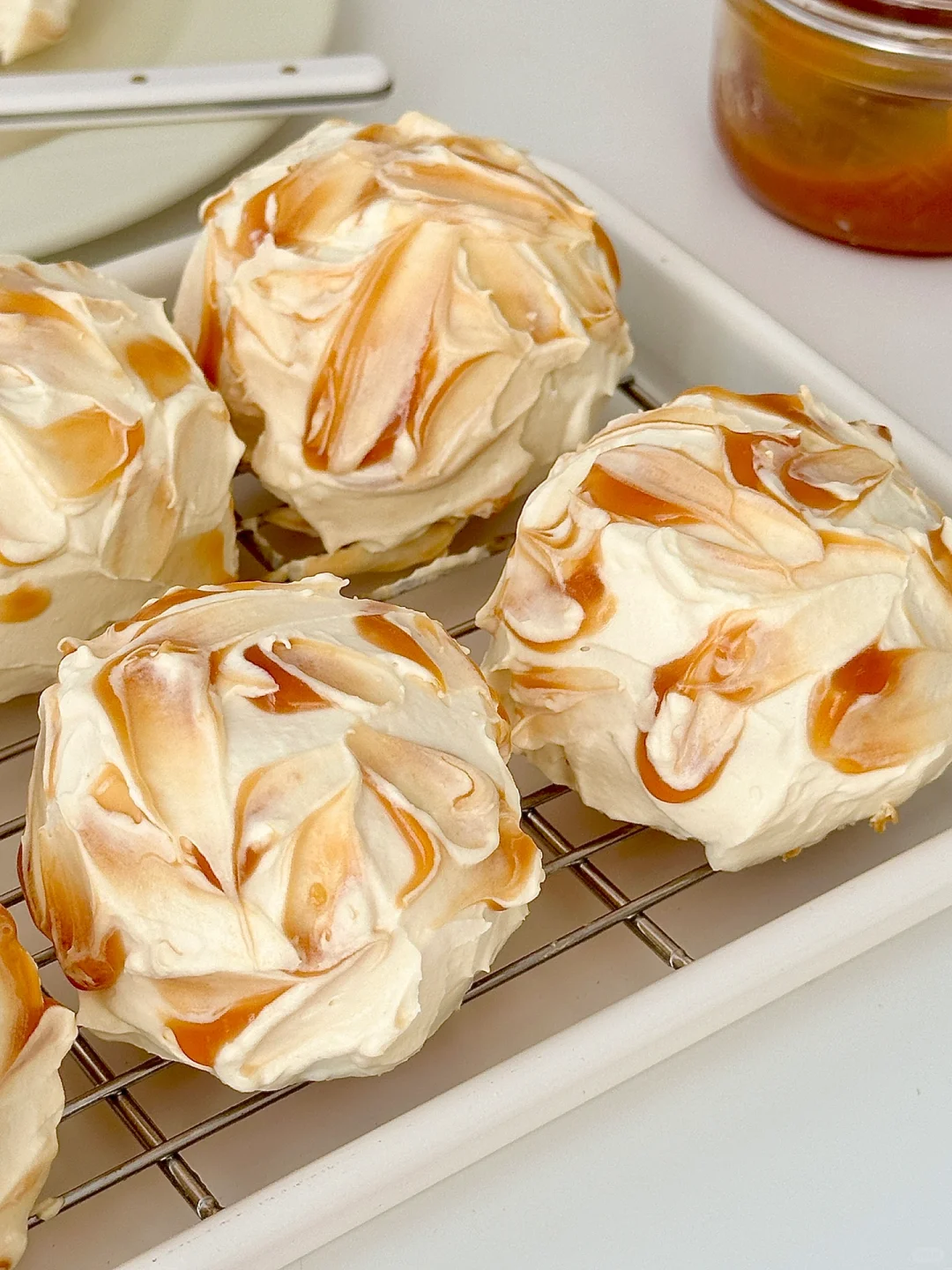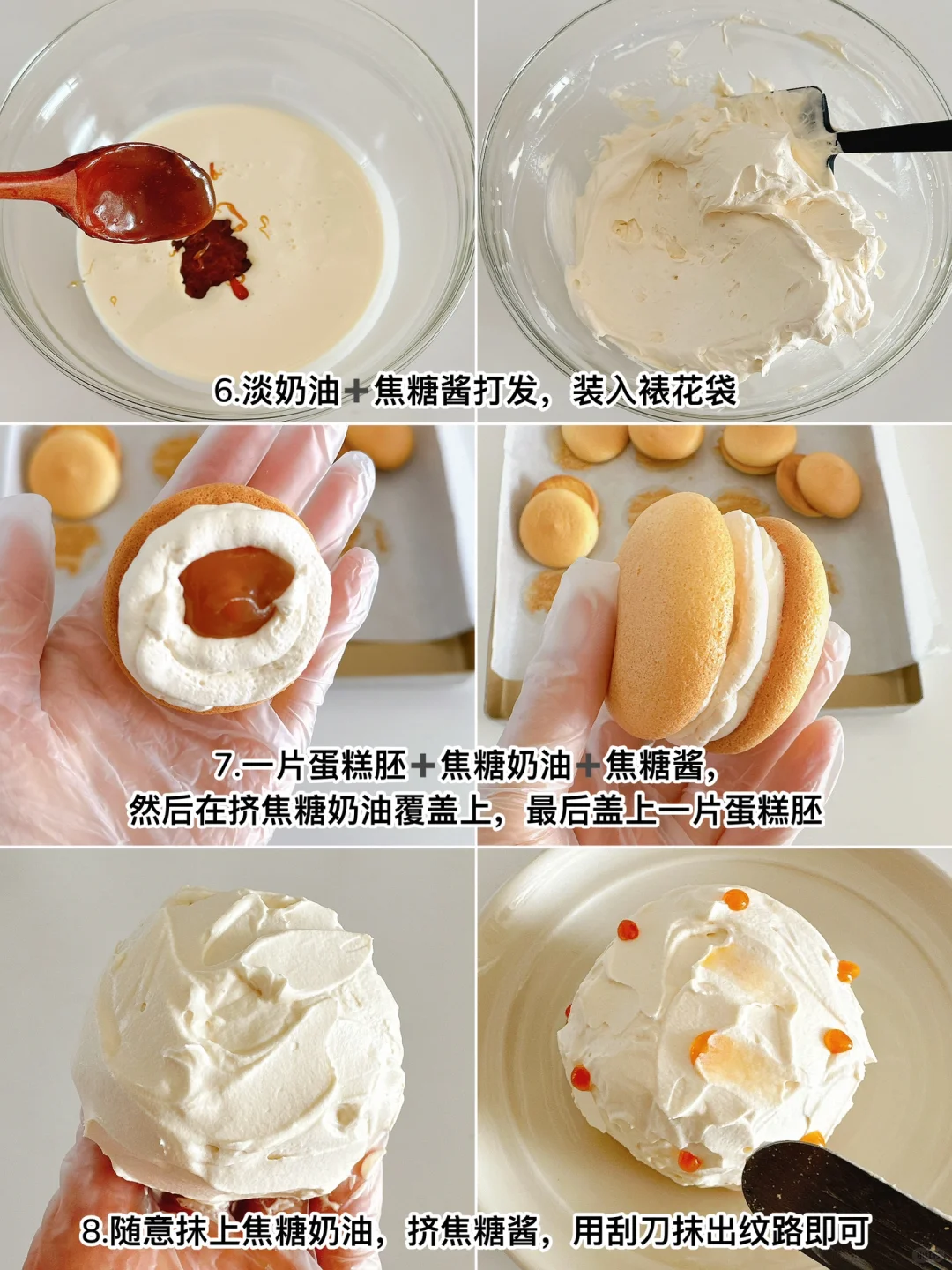5️⃣淡奶油➕焦糖酱混合打发后装入裱花袋