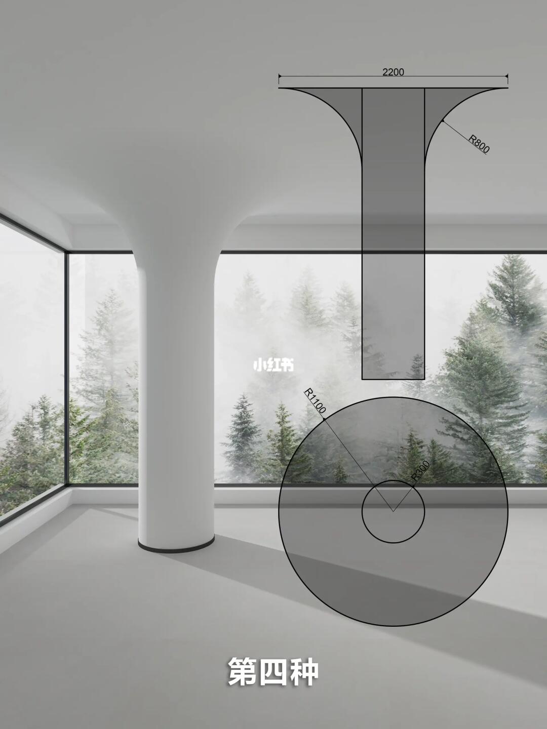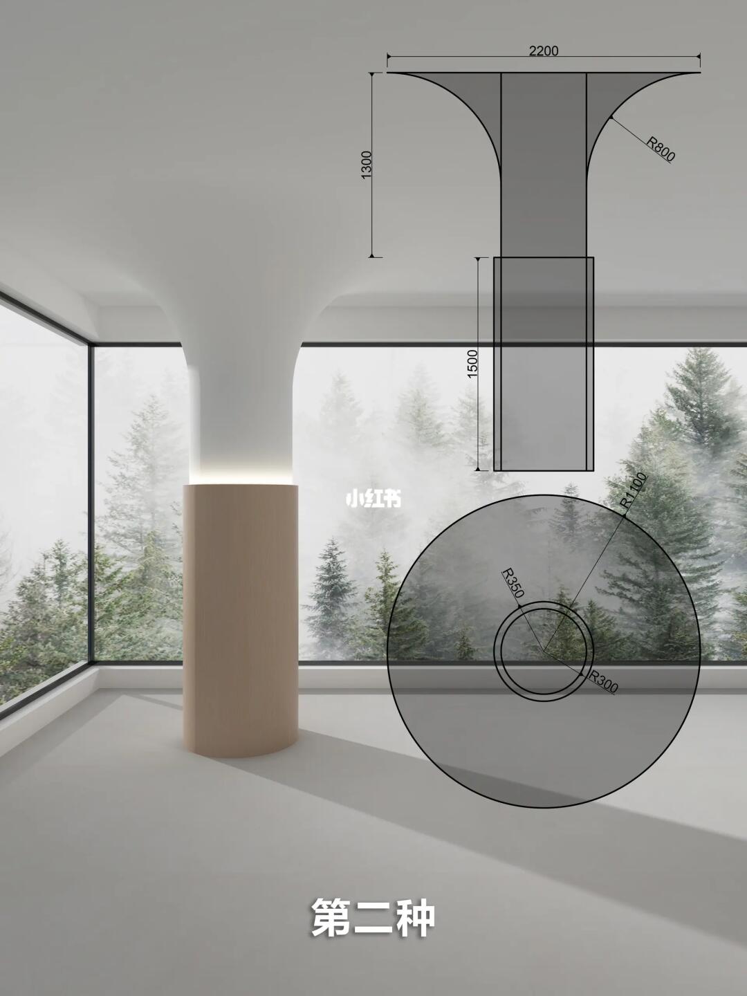 客厅的圆形柱子可以通过造型,材质,灯光来设计