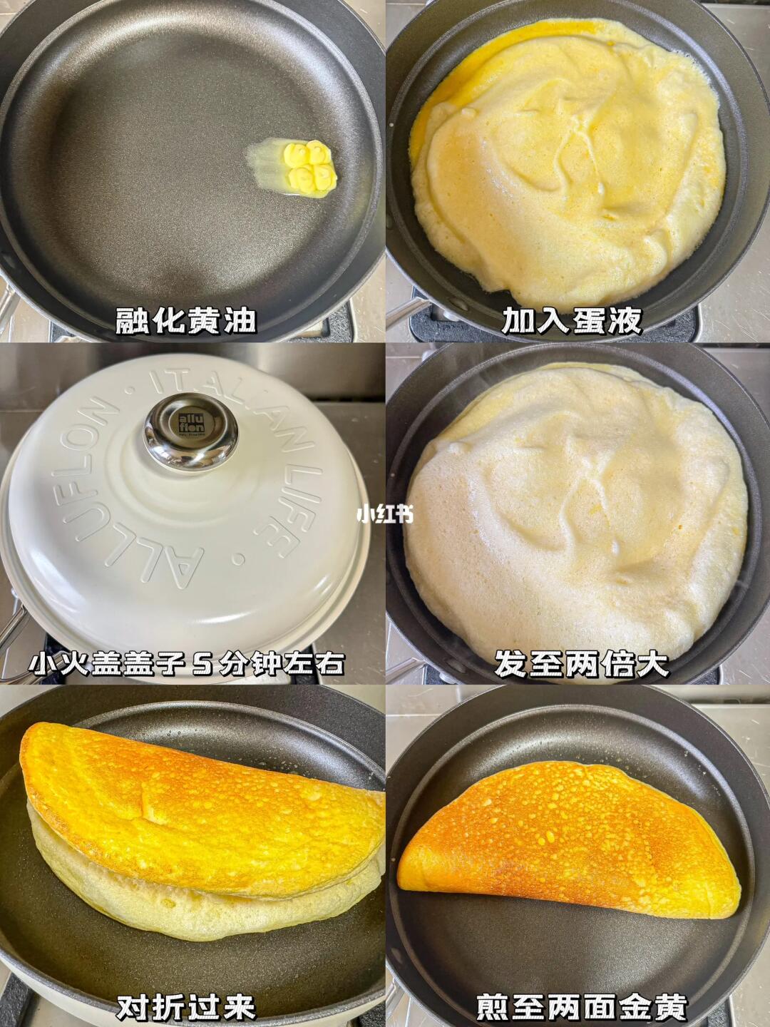 5️⃣小火盖上盖子5分钟左右,蛋饼发至原来的一倍