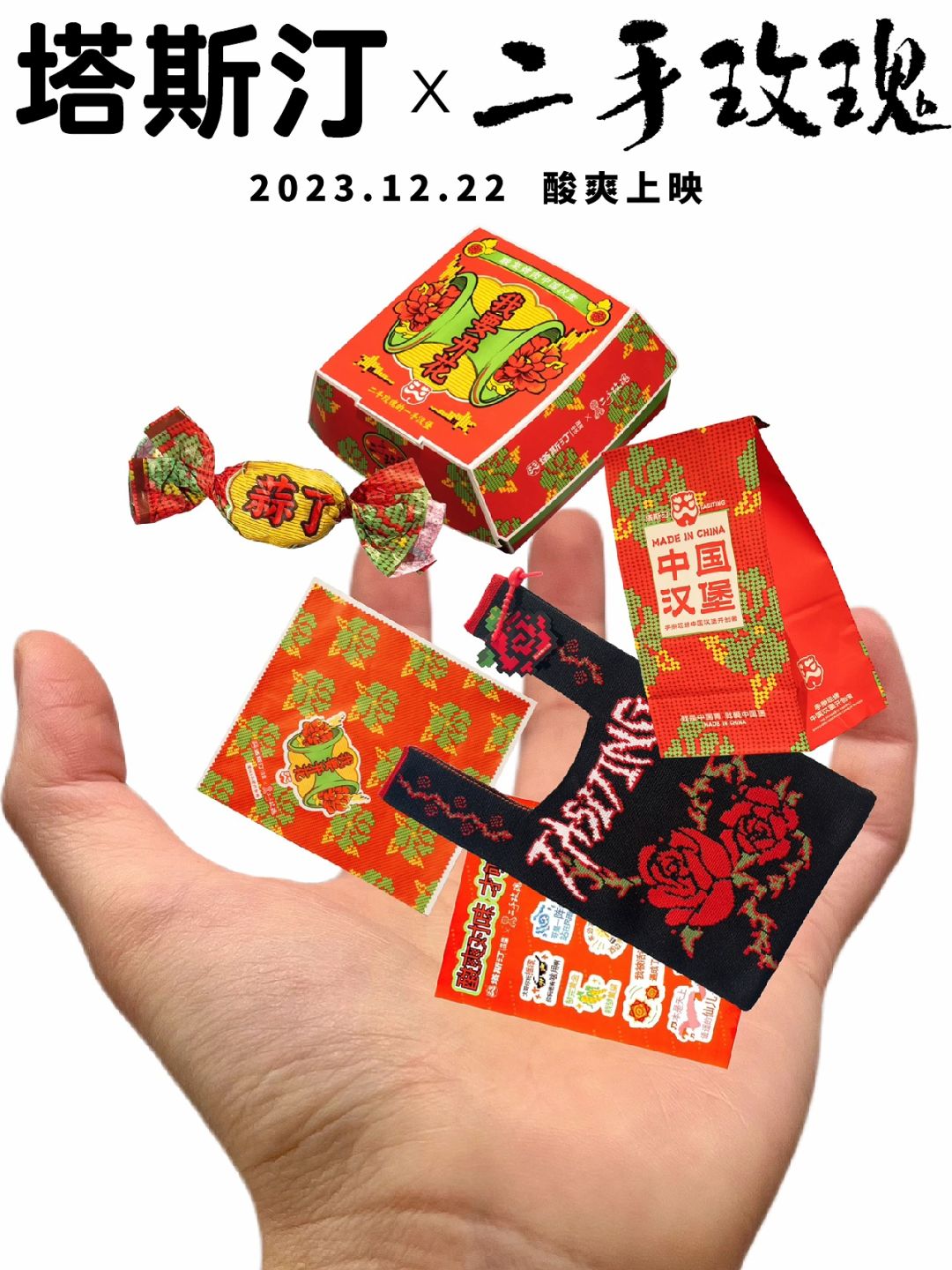 大哥你吃汉堡,你吃它有啥用啊? 🈶!🈶!🈶! 塔斯汀中国汉堡和二手玫瑰联名周边啊! 唢呐一响,二手玫瑰,塔斯汀接~客~