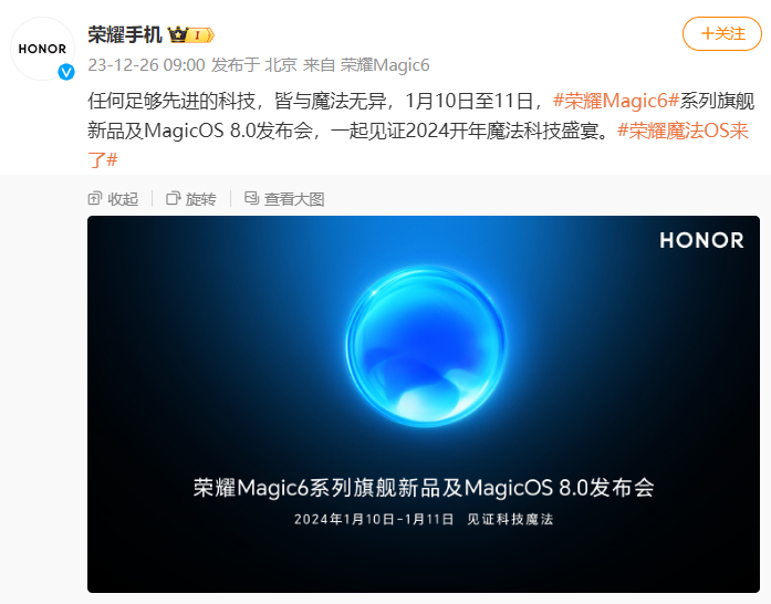 又是荣耀Magic6系列,又是荣耀X50 Pro,不知道是不是要在1月10-11号一起发布呀?[吃瓜][嘻嘻]