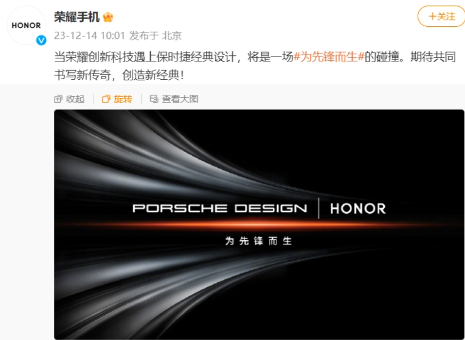 超哥点评:荣耀这边2024开年发布会,目前来看很重磅,作为开年发布会除了年度旗舰Magic系列新品,还会有全新超高端的保时捷设计款…