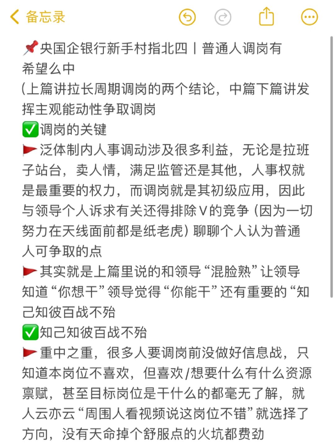 🚩泛体制内人事调动涉及很多利益,无论是拉班子站台,卖人情,满足监管还是其他,人事权就是最重要的权力,而调岗就是其初级应用,因此与领导个人诉求有关还得排除V的竞争(因为一切努力在天线面前都是纸老虎)聊聊个人认为普通人可争取的点