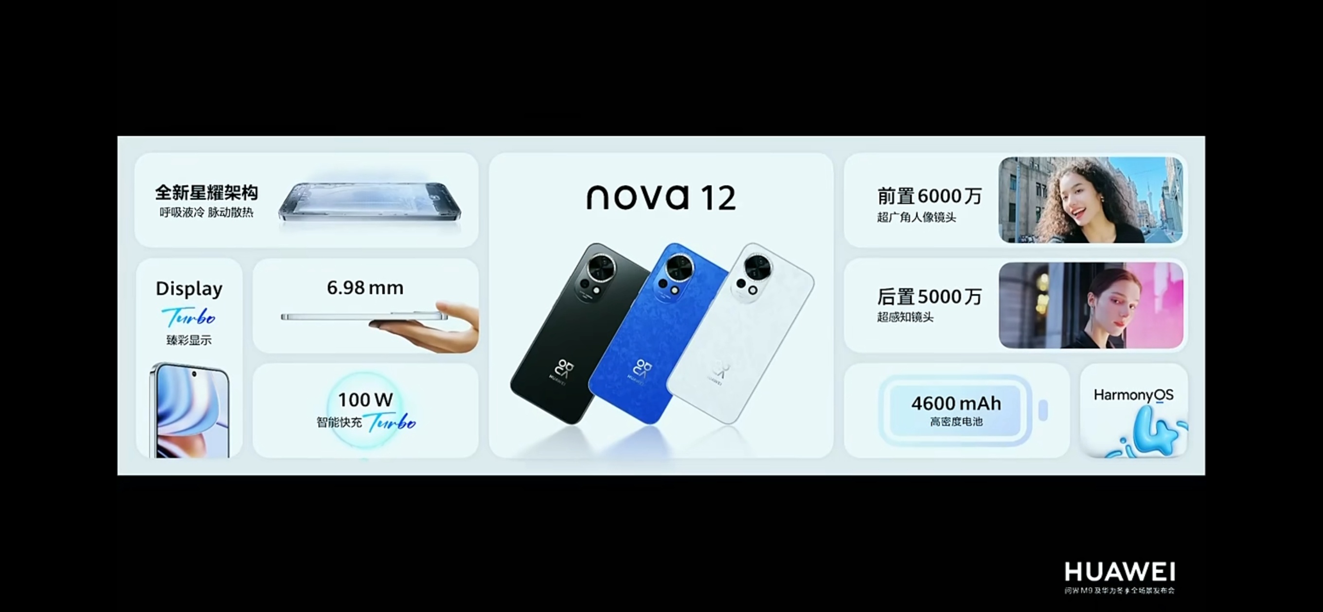 华为nova 12系列正式发布,处理器暂未公布,支持先锋计划,12月26日开启预售,1月5号陆续开售。