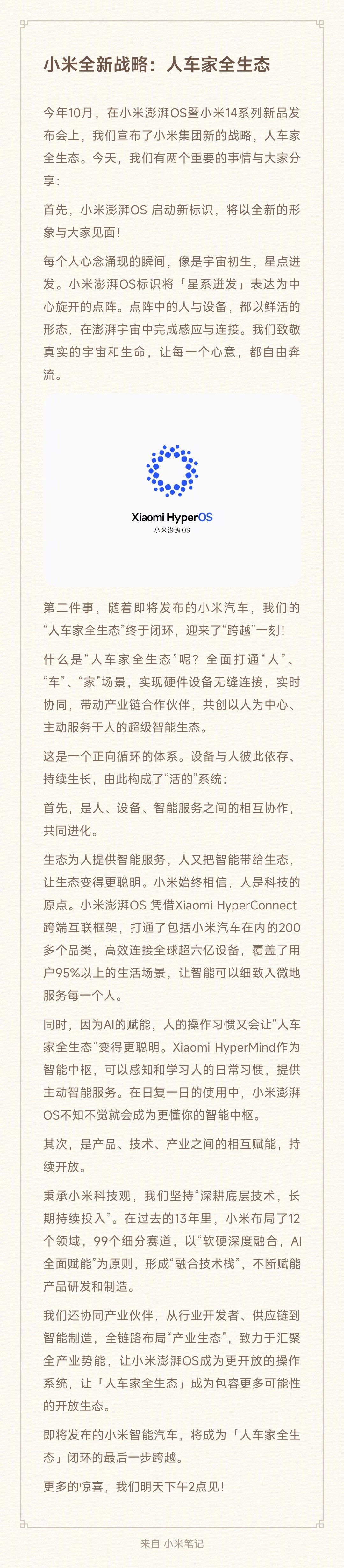 小米澎湃 OS 启动新标识,设计理念点题“人车家全生态”