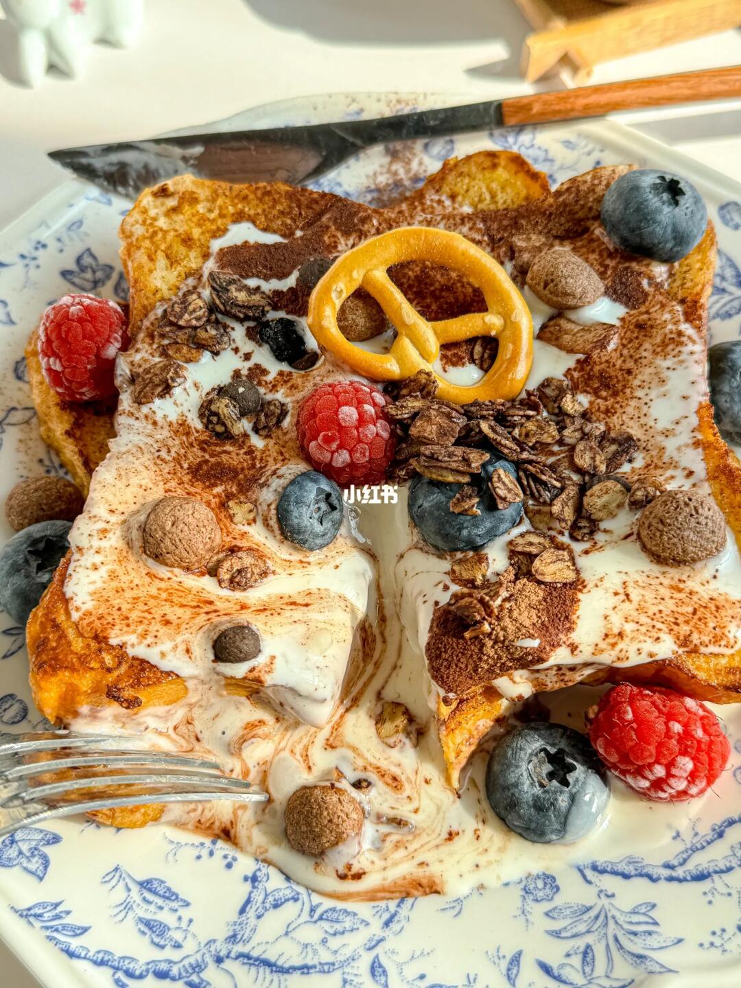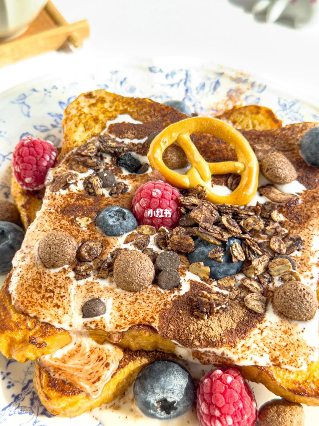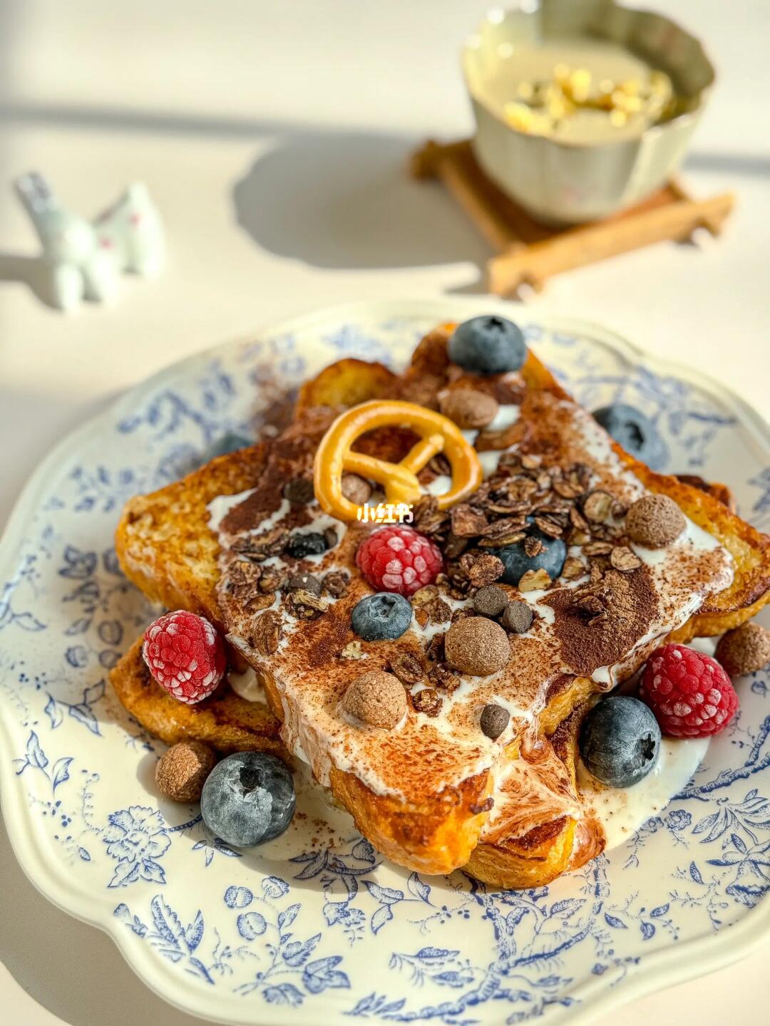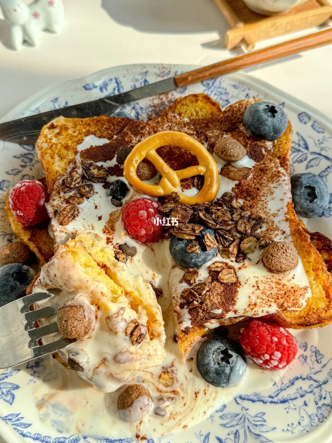 今天我又来吃法式吐司了 真的超级简单又好吃 淋上酸奶 撒上可可粉 搭配自己喜欢的水果和麦片 简单又有颜值的快手早餐10分钟搞定