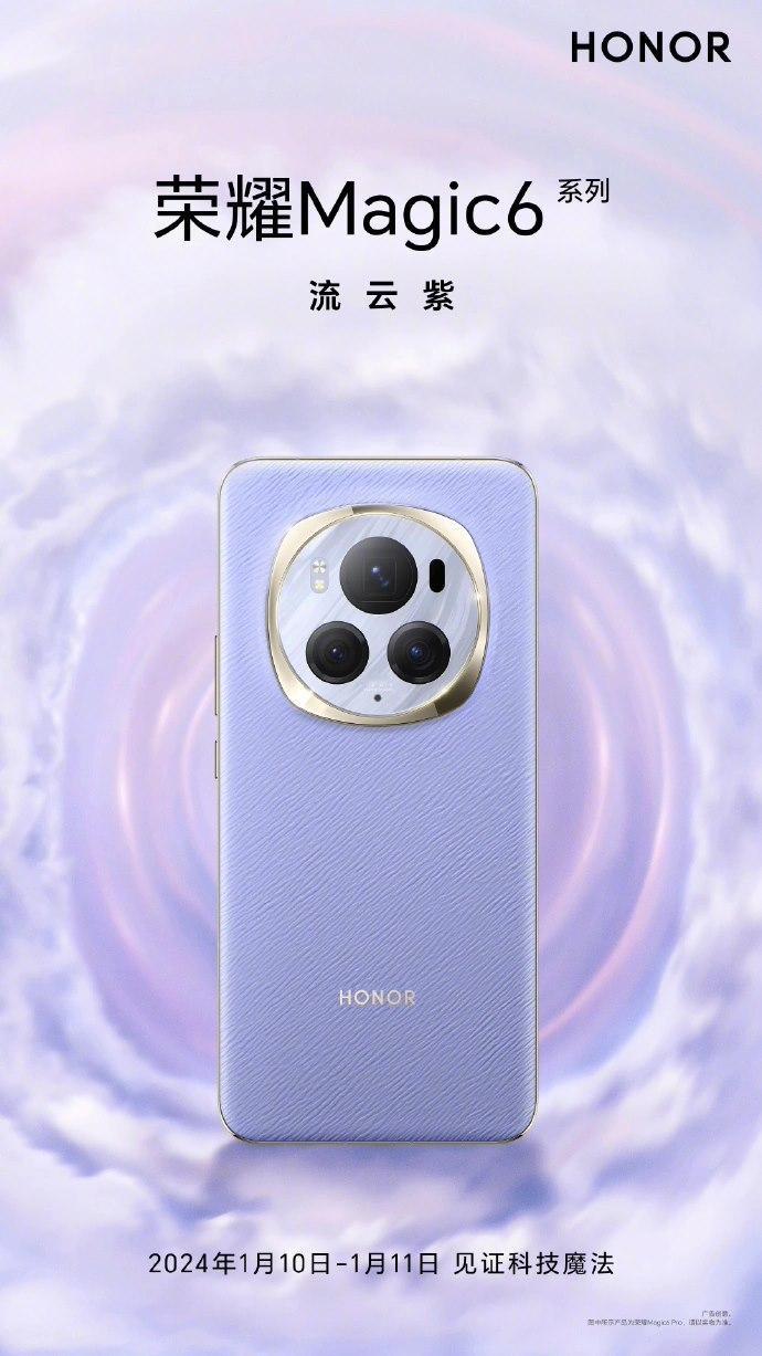 荣耀Magic6系列发布在即海湖青、流云紫、祁连雪、麦浪绿,四个配色都公布,有素