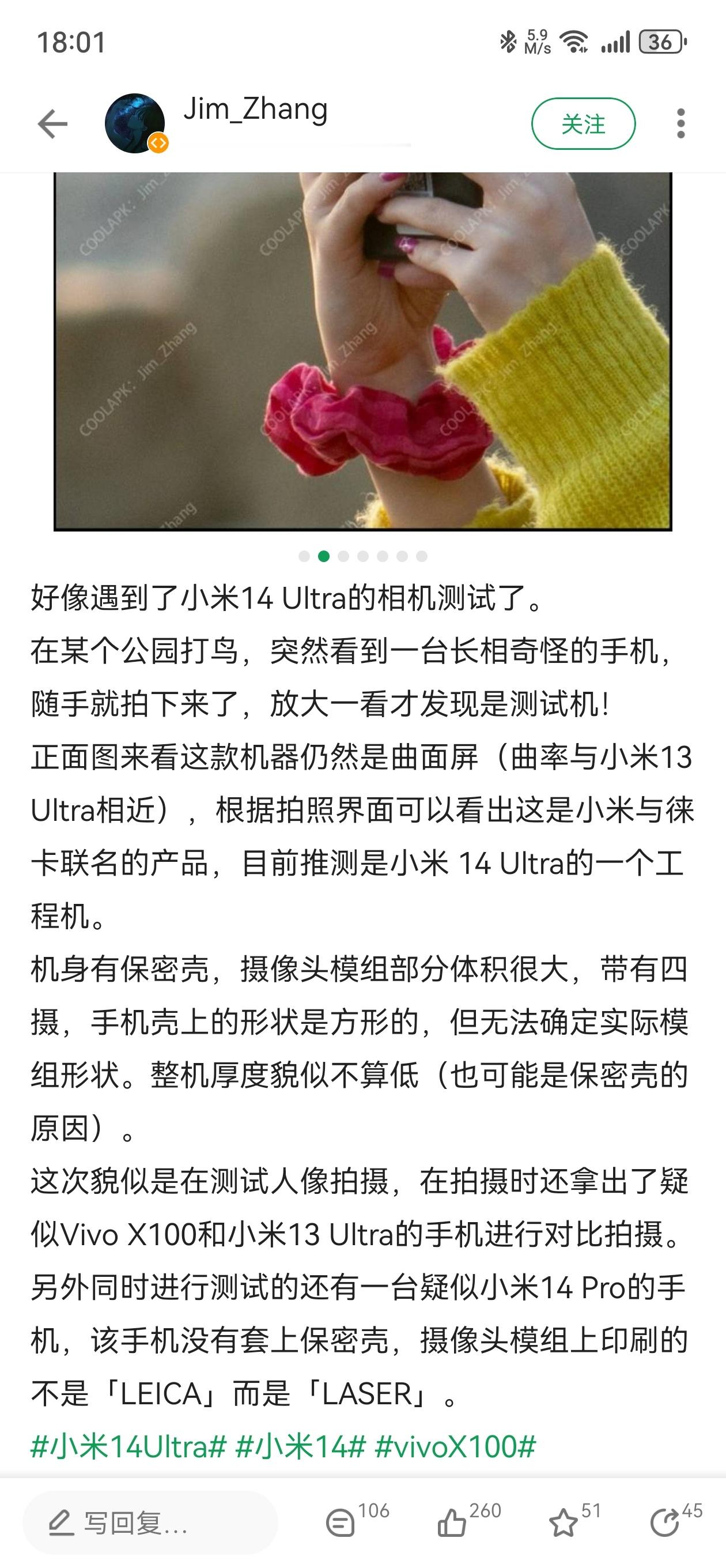 而是“公园无意间拍到”正好是测试机小米14 Ultra[吃瓜]