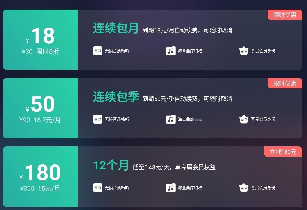 啊[吃惊][晕] QQ音乐TV端也是独立收费体系了。连续包月18,包年180……