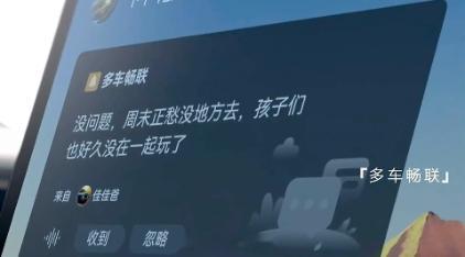 这个多车畅联的功能有点像在车内塞入了一个「对讲机」或者说是「微信」,系统将通过 VIN 建立点对点的车辆联系,直接通过中控屏幕就可以使用语音的方式向关联车辆发送即时信息。组队长途自驾的时候,这个功能应该非常刚需。