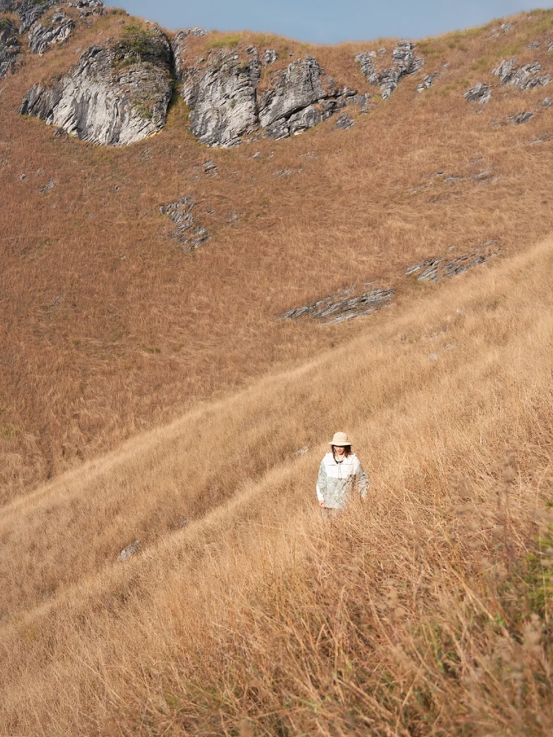 6️⃣这个季节大回山的草变成金黄色,在毛茸茸的草甸里躺一躺舒服极了。因为坡比较陡很容易滑倒注意小心慢行。看到有人玩滑草,虽然看着挺好玩的,但是真不太建议在山上滑草危险系数太高