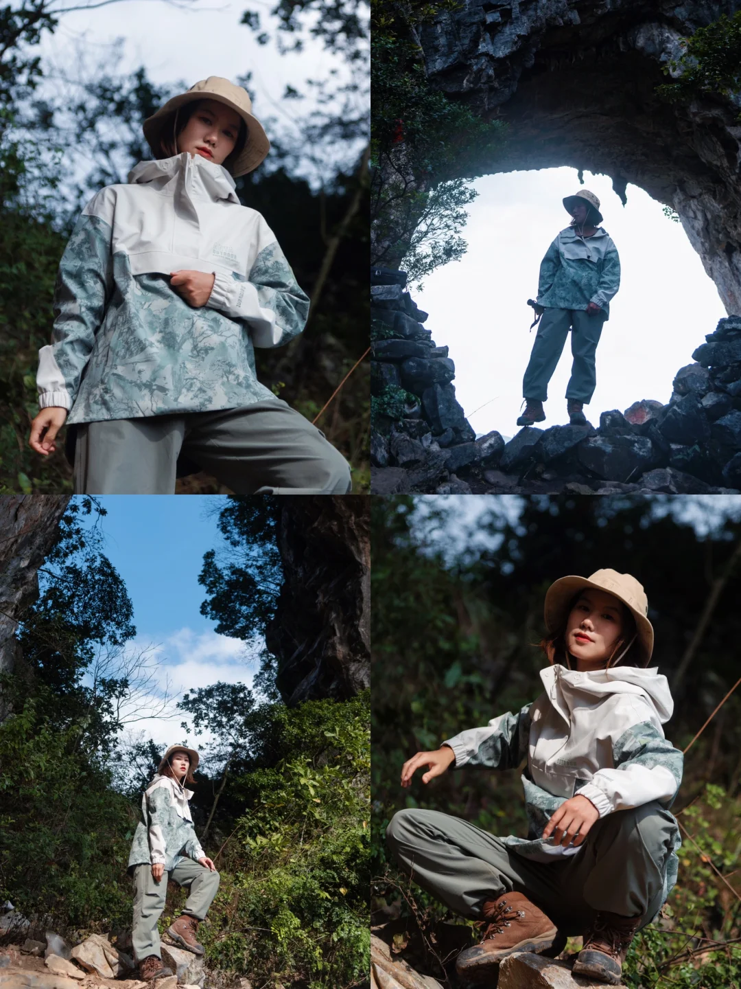 真是应了个景,正好穿了安踏x 中国国家地理风暴甲联名款,算是寻找中国国家地理了吧。腰身印花的设计时尚经典,不怕撞衫拍照又好看,还可以做日常穿搭。腋下的拉链设计很贴心,在爬山过程中可以拉开快速散热,衣服很轻巧方便在山里快速穿梭,天门洞口和山顶风很大,安踏膜的本身的防风防暴雨高透气性能在户外表现非常优秀
