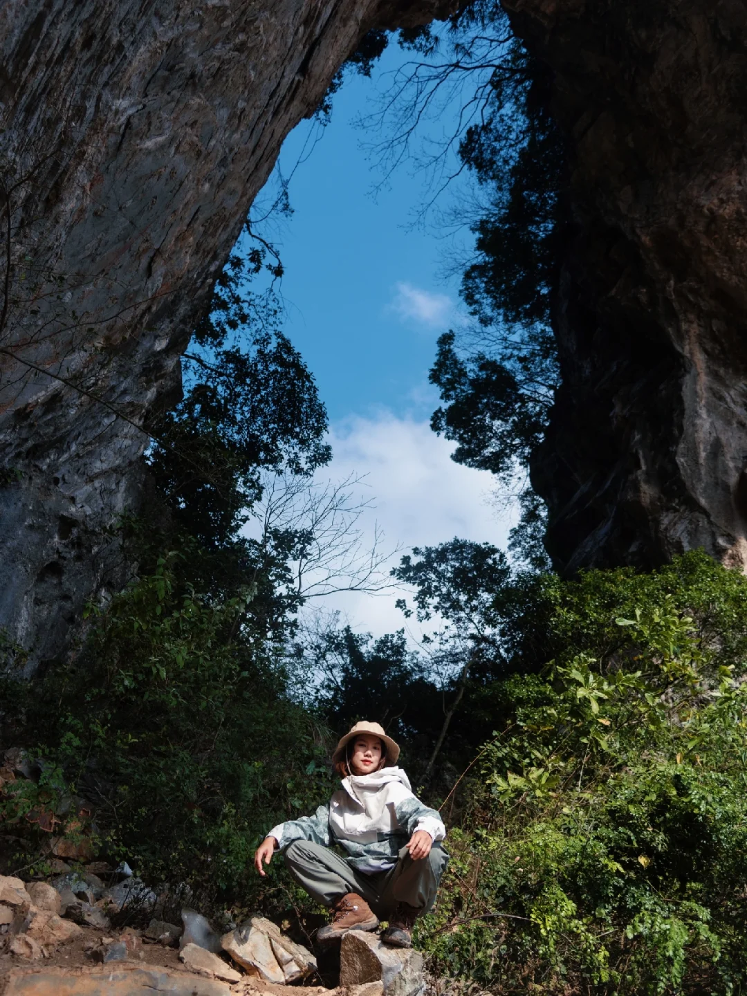 7️⃣很多人会错过大回山山腰的山羊洞,有点像迷你版高峰天坑的大嘴,坑口凹个造型拍个照还是相当出片