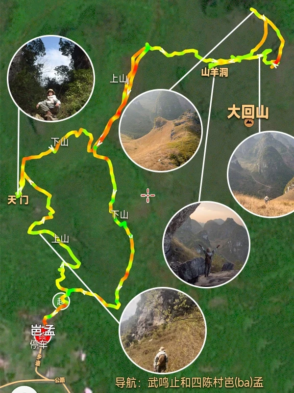 2️⃣还没到目的地就能看到广西版圣象天门的洞,按我轨迹走往村里开即可,见图2