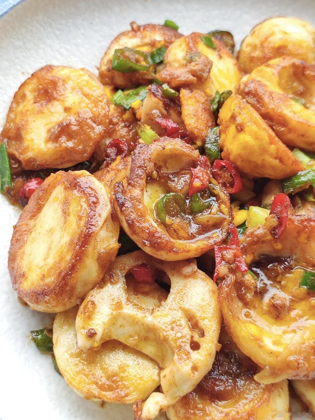 焦香鲜辣的金钱蛋,确定不来一碗?这也是一道家长十有八九会喜欢的菜呢,但是翻面的时候要小心哦!别弄散啦