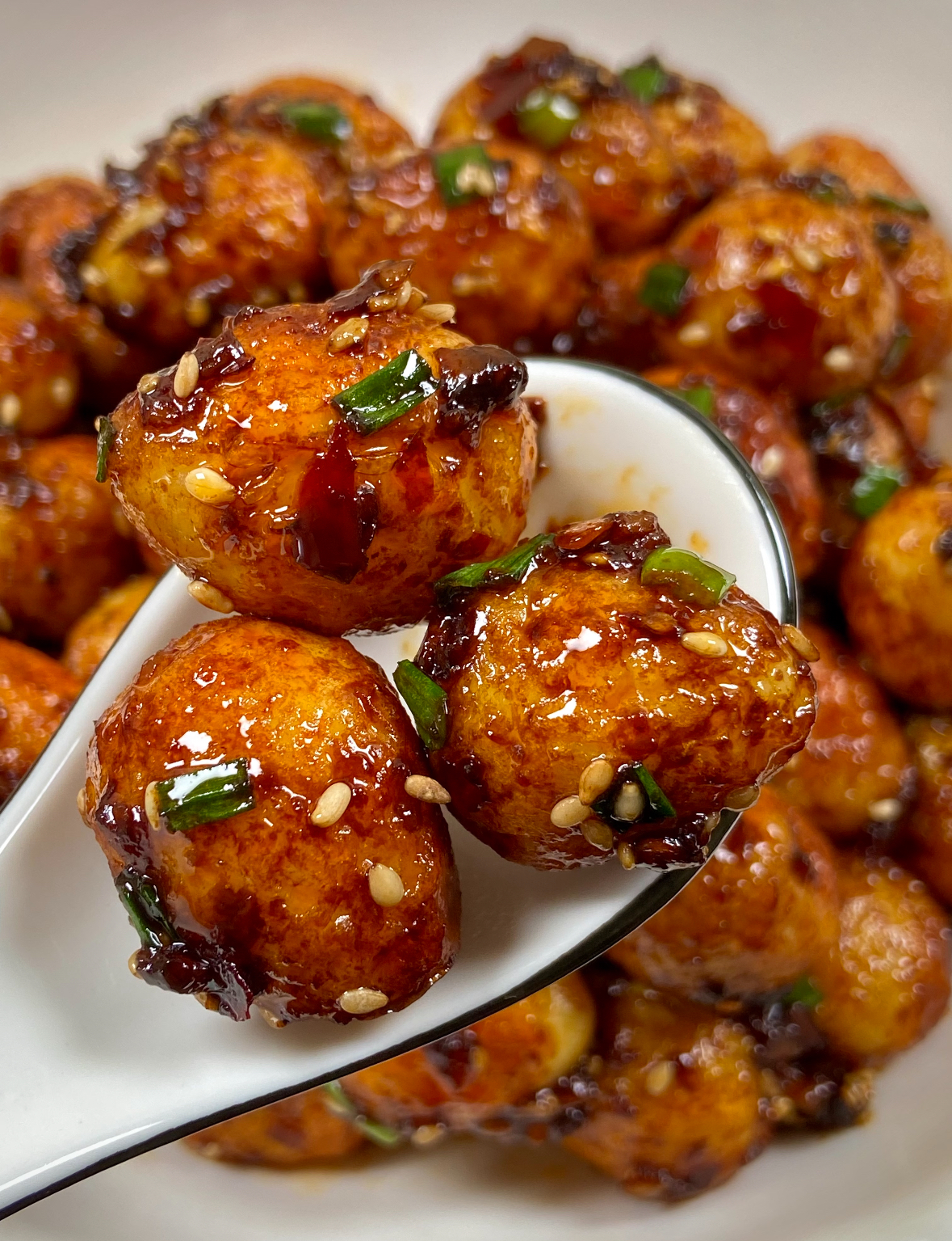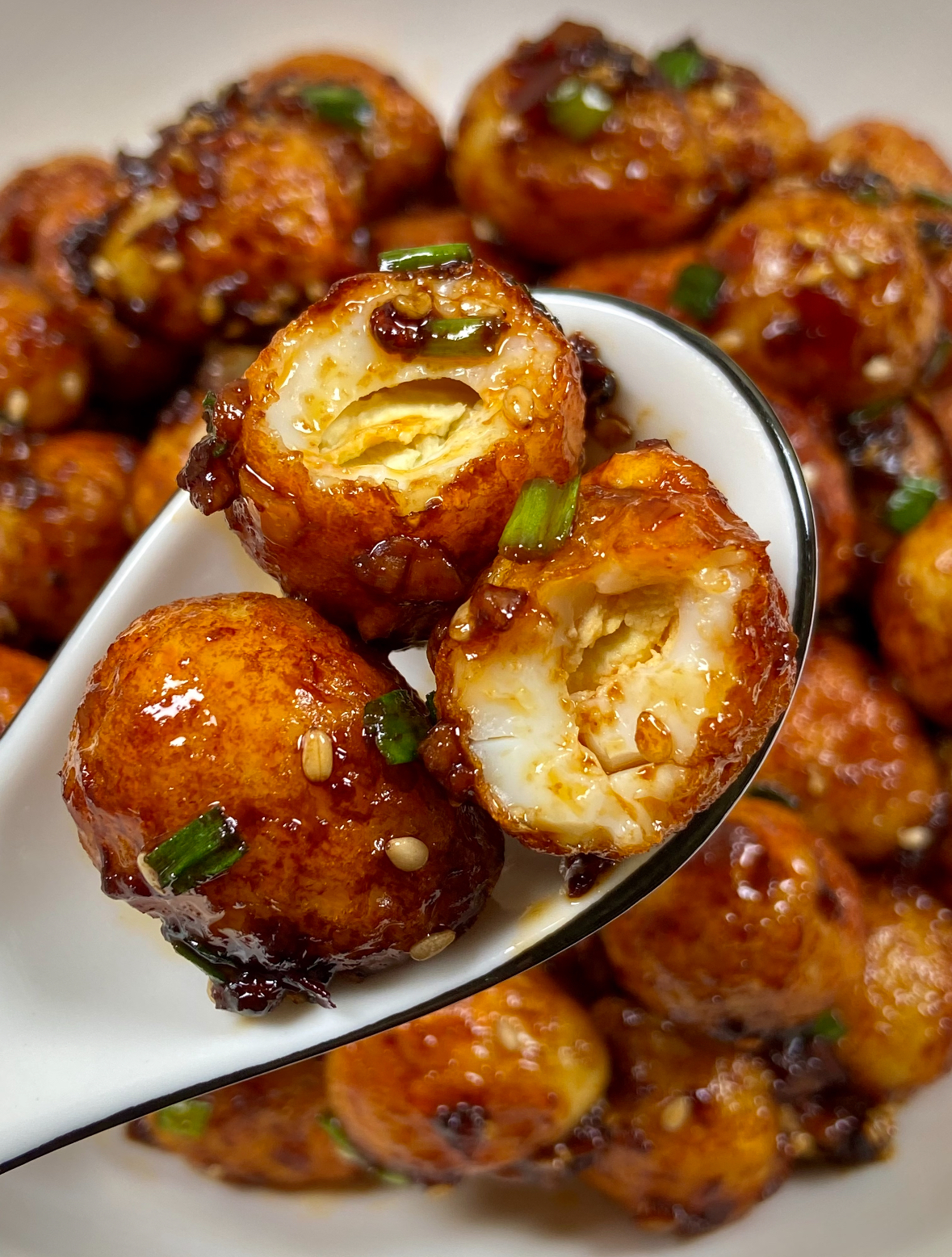 新鲜鹌鹑蛋300克(约25-30个)大葱2根(切葱花)、生姜3片(切丝或末)、大蒜2-3瓣(切末)生抽1-2汤匙、老抽半勺至1茶匙(上色用)、料酒1汤匙(可选)、盐适量、白糖半勺(提鲜)、胡椒粉适量、鸡精或蚝油(可选)、豆瓣酱1勺(可选)、食用油适量干辣椒适量(可选)、八角半个(可选)、白芝麻少许(装饰用)、水淀粉适量(勾芡用)1. 将鹌鹑蛋用清水洗净,放入锅中加入足量冷水,水量要没过鹌鹑蛋。开大火煮沸后,转中小火煮5-7分钟。关键点:煮的时间不宜过长,否则蛋黄会变干,影响口感。煮好后用漏勺捞出,立即放入冷水中浸泡至完全冷却。这个冷热交替的过程能使蛋壳更容易剥离,且不易破坏蛋白的完整性。剥壳时,可轻轻敲打蛋壳使其产生裂纹,然后小心剥离。2. 剥壳后的鹌鹑蛋必须用厨房纸巾彻底擦干表面水分,这一步至关重要,能防止后续炸制时热油飞溅。在锅中倒入适量食用油,油量以能没过鹌鹑蛋为宜。加热至五到六成热(插入筷子周围有细小气泡产生)。将鹌鹑蛋轻轻滑入锅中,保持中小火慢炸。炸制过程中,用勺子轻轻滚动鹌鹑蛋,使其均匀受热。观察鹌鹑蛋表面逐渐变成金黄色并出现凹凸的“虎皮”纹路,这个过程大约需要3-5分钟。炸好后用漏勺捞出,沥干多余油分。3. 在另一个锅中加少许底油,烧热后放入姜丝、蒜末和干辣椒(如使用),小火炒香。若使用豆瓣酱,此时加入1勺炒出红油和香味。放入炸好的虎皮鹌鹑蛋,轻轻翻炒使其均匀裹上调味料。加入生抽、老抽、料酒(如使用)、盐、糖、胡椒粉等调味料。倒入小半碗清水,转中小火焖煮约5分钟,让鹌鹑蛋充分吸收汤汁味道。若喜欢浓稠汤汁,可在收汁前加入适量水淀粉,使汤汁粘稠包裹在鹌鹑蛋表面。4. 当汤汁收浓时,撒入切好的葱花,快速翻炒几下即可关火。装盘后可再撒上少许新鲜葱花和白芝麻作为装饰。这样一道色香味俱全的葱花虎皮鹌鹑蛋就完成了。美味小贴士1. 选择大小均匀的鹌鹑蛋,确保烹饪时间一致。新鲜鹌鹑蛋煮熟后更易剥壳。2. 鹌鹑蛋表面彻底擦干后,炸之前用刀在表面轻轻划几道浅纹,有助于形成更明显的虎皮效果。炸制时油温不宜过高,中小火慢炸才能外酥里嫩而不焦糊。3. 基础口味为咸鲜,但可根据个人喜好调整。喜欢酸甜口的可加入番茄酱;喜欢辣味的可增加干辣椒或香辣酱;喜欢酱香味的可侧重豆瓣酱和蚝油。4. 减少油量,用煎代替炸。使用轻盐酱油和蚝油,降低钠摄入。减少糖的用量,或使用代糖。5. 冷藏可保存2-3天。再加热时可用微波炉或蒸锅,蒸锅加热能更好保持口感。6. 炸制鹌鹑蛋时务必擦干水分,防止热油飞溅烫伤。煎炸过程中可用锅盖稍作遮挡,进一步防止油点外溅。鹌鹑蛋富含蛋白质、维生素B族、卵磷脂和矿物质,营养价值不亚于鸡蛋,且更易消化吸收。虎皮鹌鹑蛋外酥里嫩,口感层次丰富,是一道适合全家人享用的营养美食。这道菜可作宴客菜、家常下饭菜或便当配菜。搭配米饭或面条主食,可平衡口味。搭配清淡蔬菜汤或凉拌菜,可解腻增香。作为便当配菜,即使冷却后风味依然可口。葱花虎皮鹌鹑蛋不仅是一道菜,更是一种烹饪乐趣。当你看到光滑的鹌鹑蛋在油锅中逐渐形成凹凸有致的虎皮纹路,闻到葱花与酱料混合的香气弥漫厨房,这种成就感无可替代。无论是为挑食的孩子准备,还是作为宴客的“秘密武器”,这道菜都能带来惊喜与满足。