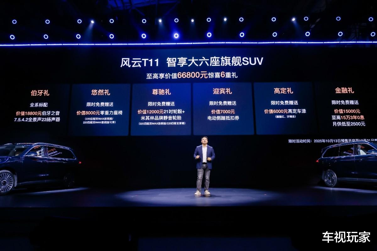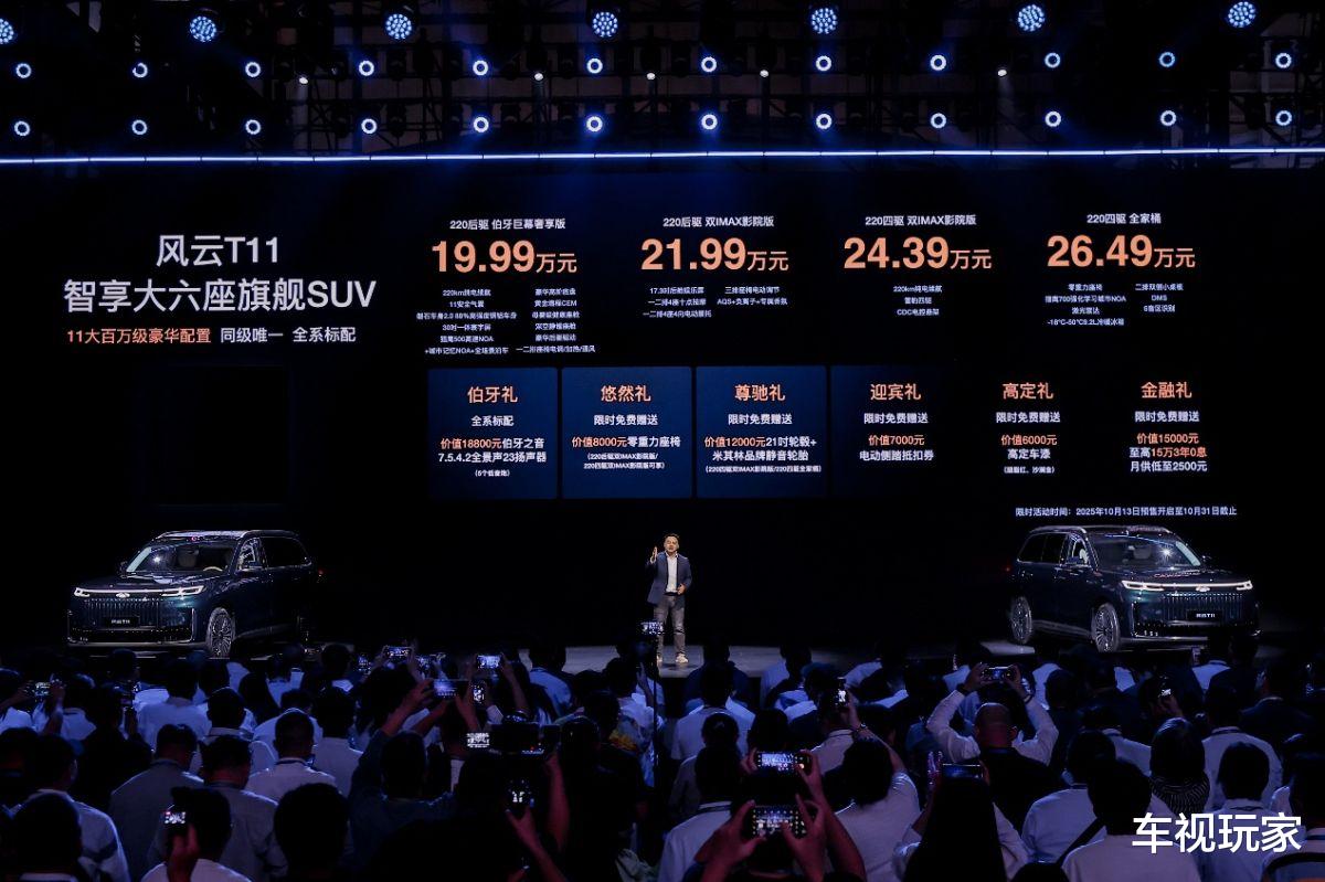 10月13日,聚焦家庭出行需求的风云T11“家庭品鉴日暨预售发布会”在安徽芜湖举行,这款主打“智享大六座旗舰SUV”定位的正式启动预售,共推出四款配置车型,预售价区间为19.99-26.49万元,凭借全维度的产品配置与贴合家庭用户的定价策略,为20-30万元级家庭SUV市场注入新活力。