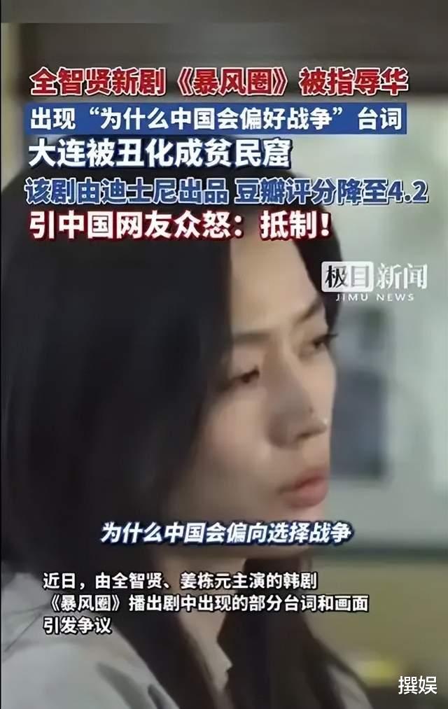 最终,全智贤的傲慢在《暴风圈》中终于彻底爆发。那句台词:“为什么中国会偏好战争?”完全是对中国和平外交政策的歪曲。