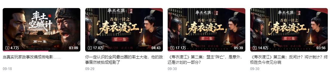 这些精彩的率土真人玩家故事,未来都有可能被率土拍成短剧发布出来,目前在率土小破站的账号里已经有了“寿衣渡江”和“率土空城计”两个故事了,感兴趣的玩家可以去看一看,拍的还是相当有意思的。