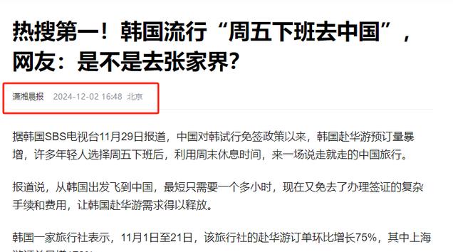 (信源:潇湘晨报2024年12月2日—热搜第一!韩国流行“周五下班去中国”,网友:是不是去张家界?)