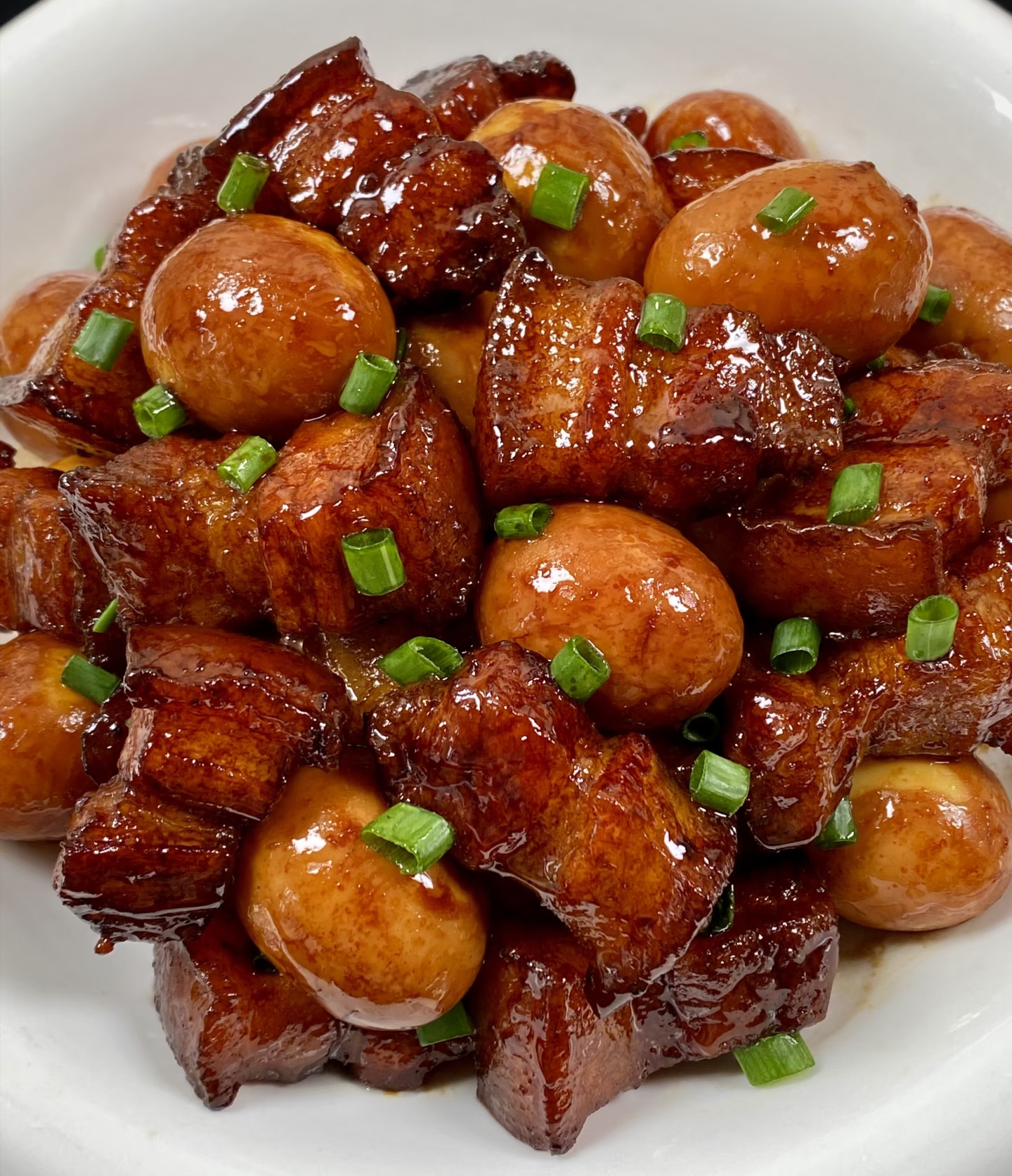 把鹌鹑蛋倒进红烧肉里,继续焖15分钟。最后开大火收汁,看到锅底冒大泡,酱汁浓稠得能挂在铲子上,这锅肉就成功啦!