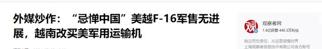 观察者网:外媒炒作:“忌惮中国”美越F-16军售无进展,越南改买美军用运输机 2024-07-25