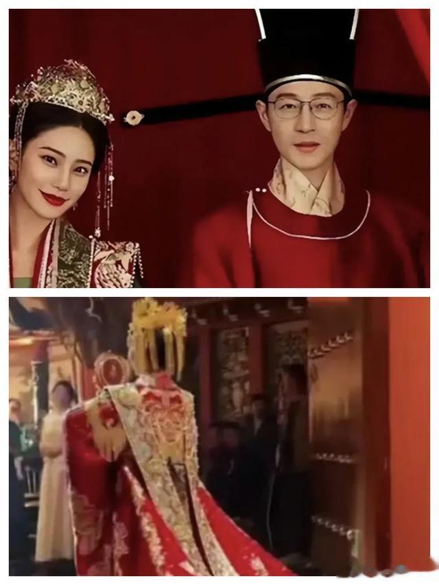婚礼在北京一处四合院内举行,采用中西结合的仪式流程。看似低调,却极尽奢华。传统中式环节如跨火盆、敬茶礼与西式交换戒指、誓言宣读交替进行,还特别邀请舞狮队助阵,盛大欢乐的场景,网友笑侃像是一场隆重的封后仪式。