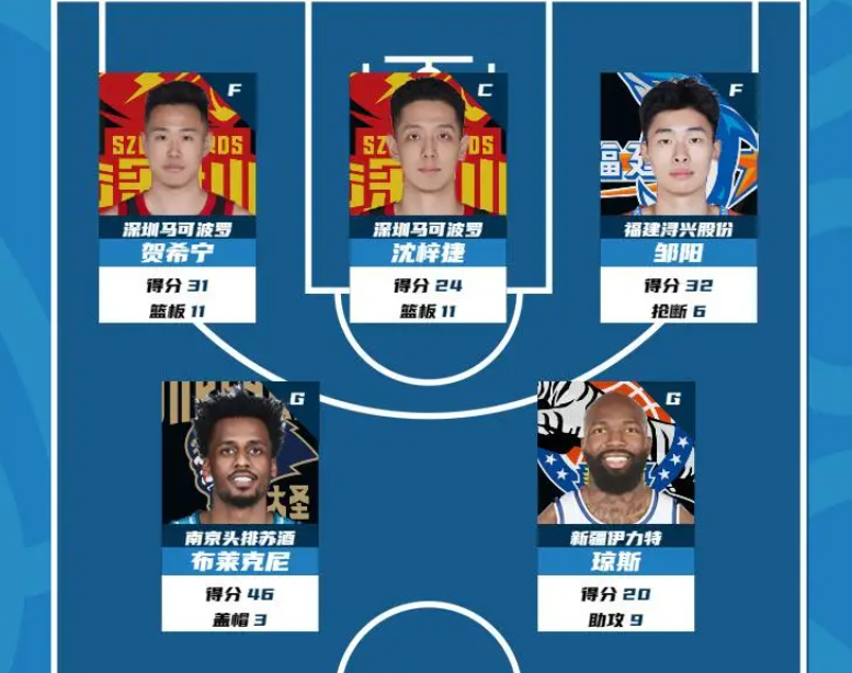 除了深圳双子星和邹阳之外,本轮最佳阵容还包括其他几位球员,他们在比赛中同样展现出色的表现。这些球员在比赛中发挥了重要作用,为球队赢得了关键胜利。他们的出色表现不仅体现了个人能力,也展现了团队合作的重要性和价值。因此,他们当之无愧地入选了本轮最佳阵容。