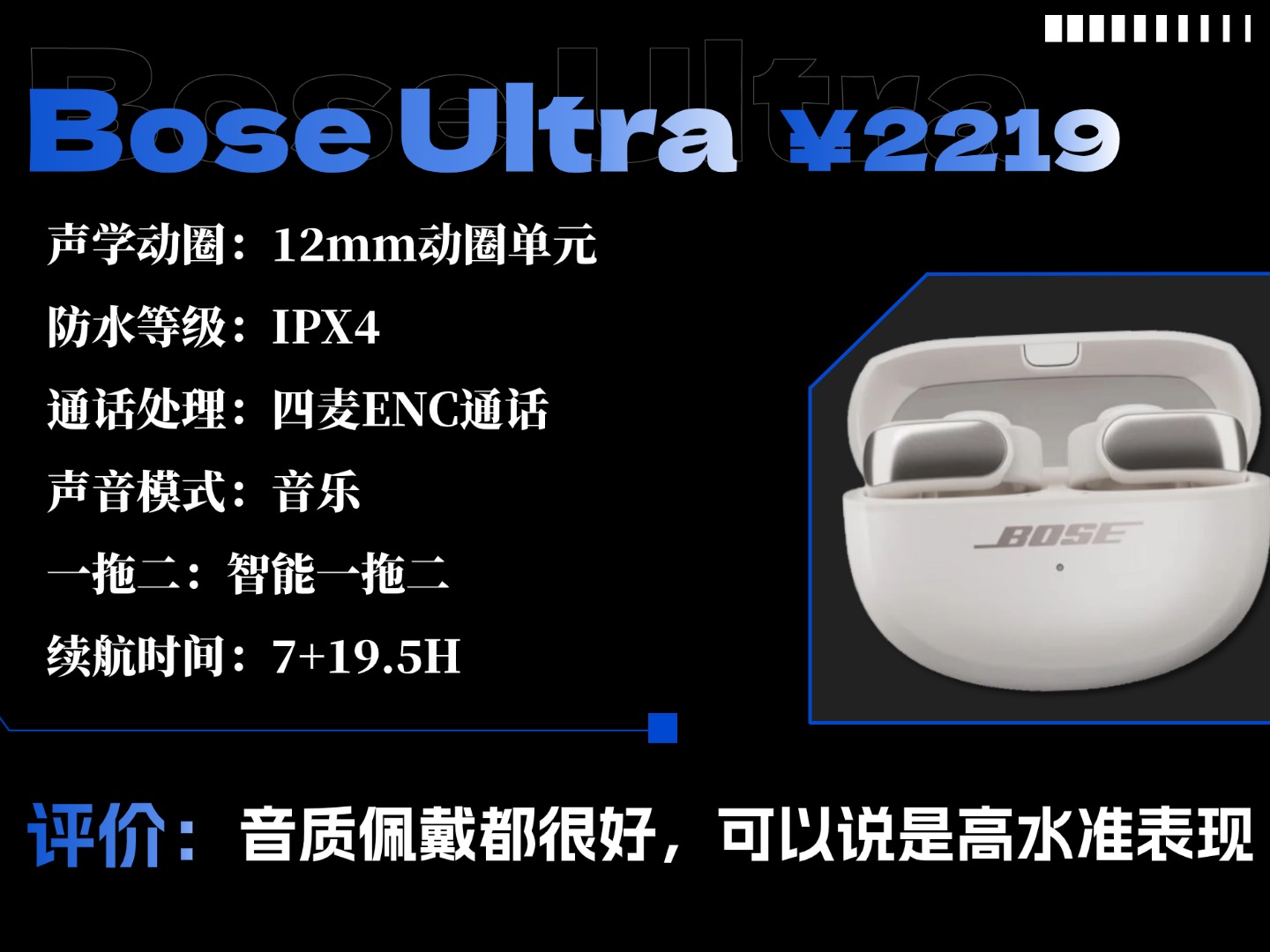 Bose Ultra价格:2219元推荐理由:高端之选,音质佩戴都属高水准