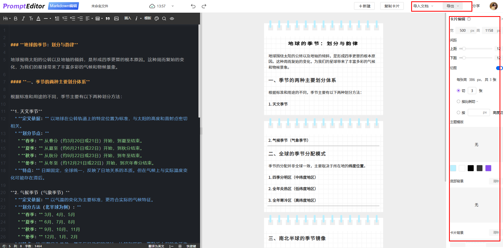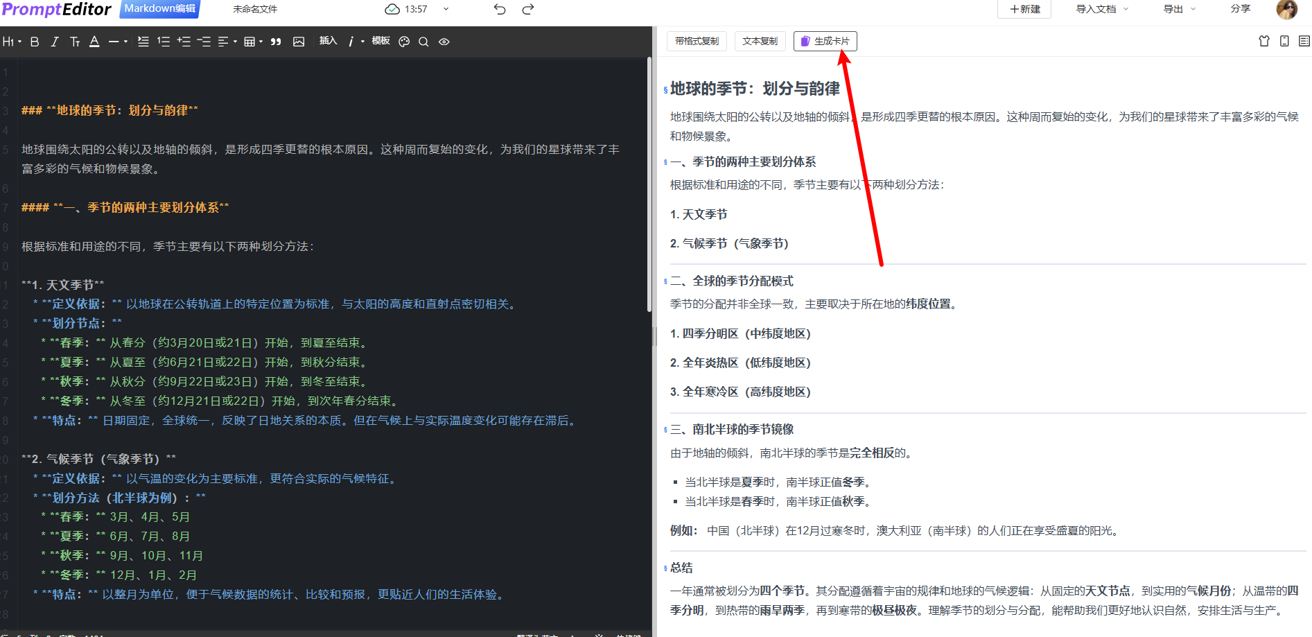 将已准备好的文章粘贴至左侧编辑区,右侧将实时预览效果。确认无误后,点击「生成卡片」。