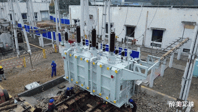 当天,现场工作人员各司其职,指挥、吊装、定位、监测等环节井然有序。在所有人的密切配合下,巨大的主变压器被缓缓吊起,平稳移动,最终精准落入设备基础。整个过程中,技术人员全程使用精密仪器进行监测,确保设备对接“零偏差”。