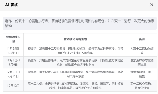 让它做一份报价表活营销活动排期,同样可以快速给到合适的参考模板,如果需求更明细,可以直接复制交差。