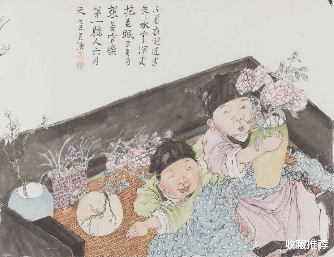 借助作品形式和内容的和谐关系,至此,我们才明白,原来在入与出之间,画家并不打算为咱们给出一个关于人生去向的答案,而不过是在呈现中国文化传统中关于人生部分的本然状态。甚至黄沾天才的词章,要紧的也非其文字内容,而首先是画家赋予的视觉状态。那是整体融入中国画章法样式的灵秀的书法,不仅平衡了构图,也拨动了琴弦……它穿越空阔的江天,风一样地把歌声传递得越来越近。