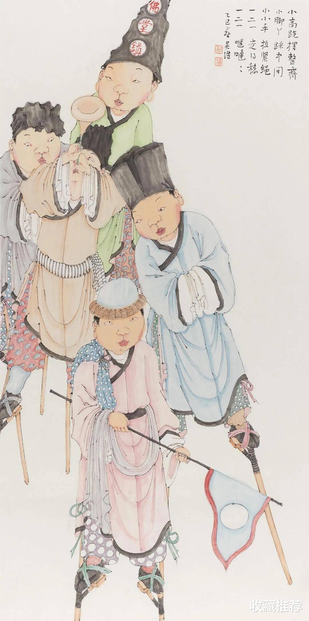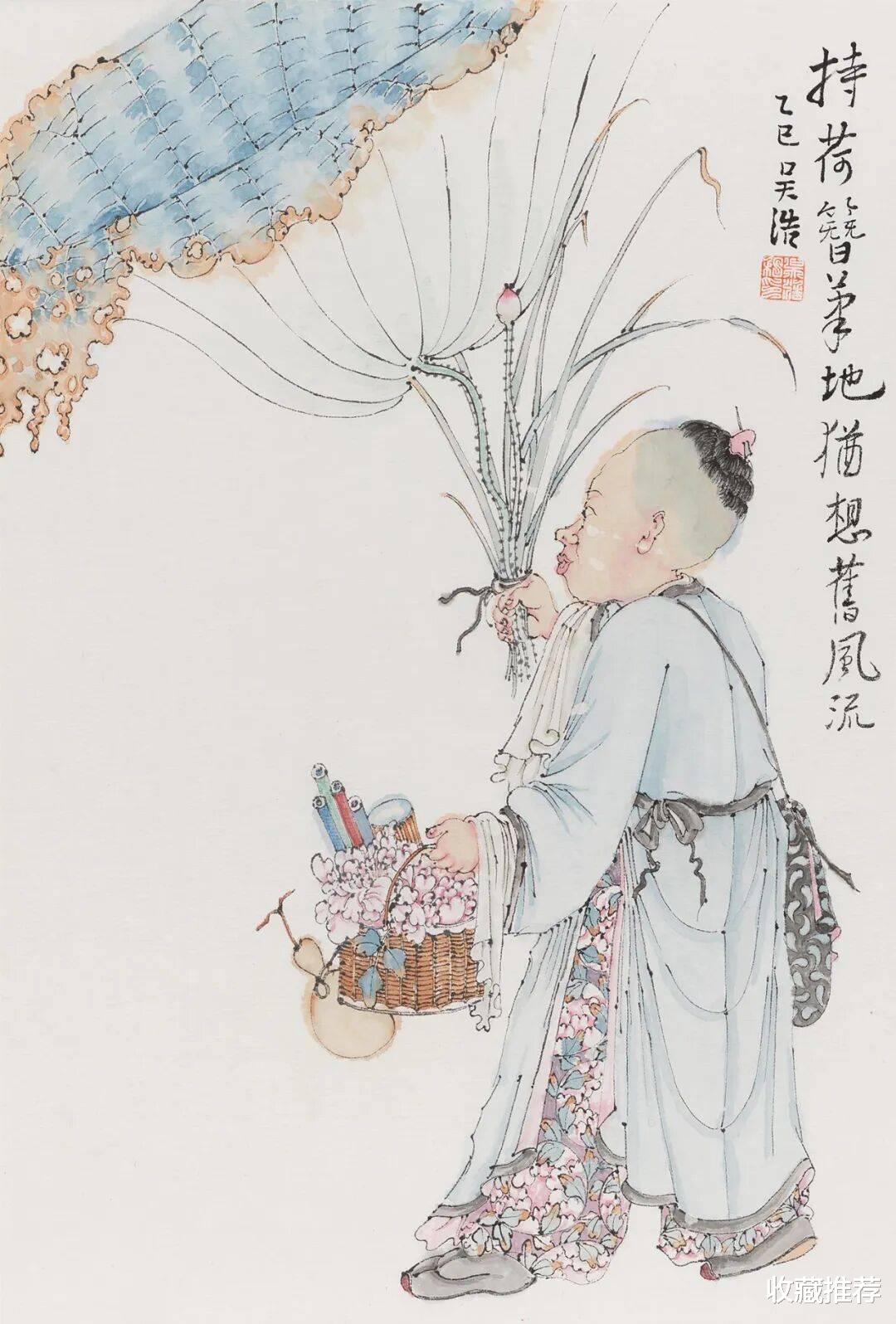 其画造型坚实,用笔精准,刻画入微。这些特点在本画中有鲜明体现。该画将人物画与界画结合一体,人物、大船、小舟,各色人物的形貌、神情、举止,舟船的形态、结构及其质地和装饰细节,都被一种高超的工笔画技术所驯服,描绘极见精美。但严谨的细节并未妨害整体的表现。这是因为画家深谙中国传统画的“以大观小”之道,始终以整体的意识对待笔下的形象,胸有成竹,举重若轻。其构图,紧凑而疏密有致;其用线,连绵而若断还续;其设色,沉厚而明澈通透。我们有理由认为,尽管画家用了工笔的技巧作画,却自始至终带着写意的胸次来完成他的作品,可谓入之以工,出之以写,或曰落笔为形,起笔见意。
