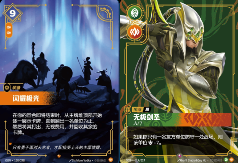 有玩家觉得闪耀极光没有那么可怕,这是环境限速器。George回答说闪耀极光的问题在于,《符文战场》这个游戏从2费到9费的时间太短——打出极光仅仅是“跳过”一个回合,就能在下一回合立即获得一个超前曲线的生物。这也是一种糟糕的游戏体验,在像第一弹这样的关键时刻完全不合适。他不想花12小时飞去上海打极光Meta,希望情况不会如此。
